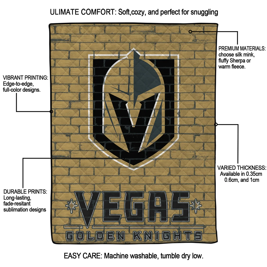 Wrap yourself in warmth and pride with the Vegas Golden Knights Brick Grid Tan Quilt Blanket from the Vegas Golden Knights Blankets collection at Yes That Blanket. Made from 100% premium quilting-weight polyester blended with a touch of microfiber, this quilt offers a smooth, soft finish you’ll love. Choose between two quilting styles—Stipple or Diagonal—and enjoy the comfort of a cotton-filled layer inside that adds extra coziness for every season. The border is available in classic black or white, giving your design a clean, timeless edge.