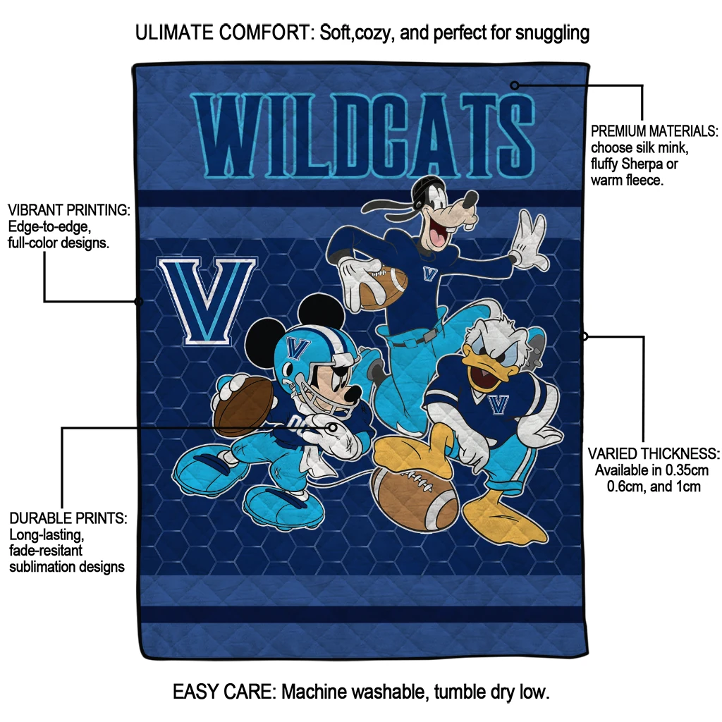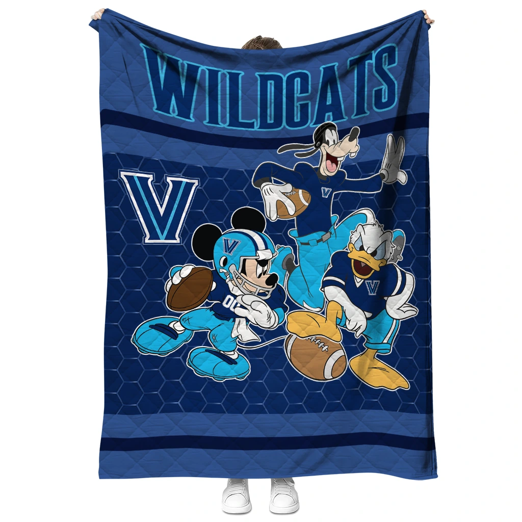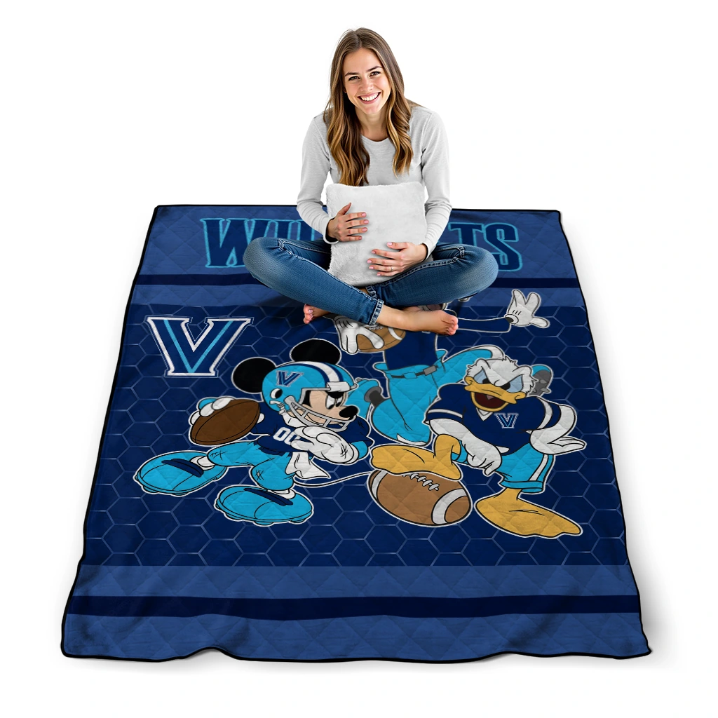 Wrap yourself in warmth and pride with the Villanova Wildcats Disney Football Navy Quilt Blanket from the Villanova Wildcats Blankets collection at Yes That Blanket. Made from 100% premium quilting-weight polyester blended with a touch of microfiber, this quilt offers a smooth, soft finish you’ll love. Choose between two quilting styles—Stipple or Diagonal—and enjoy the comfort of a cotton-filled layer inside that adds extra coziness for every season. The border is available in classic black or white, giving your design a clean, timeless edge.