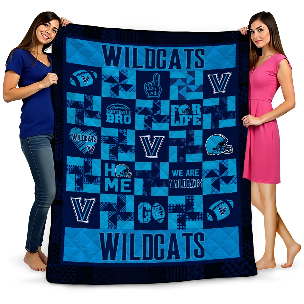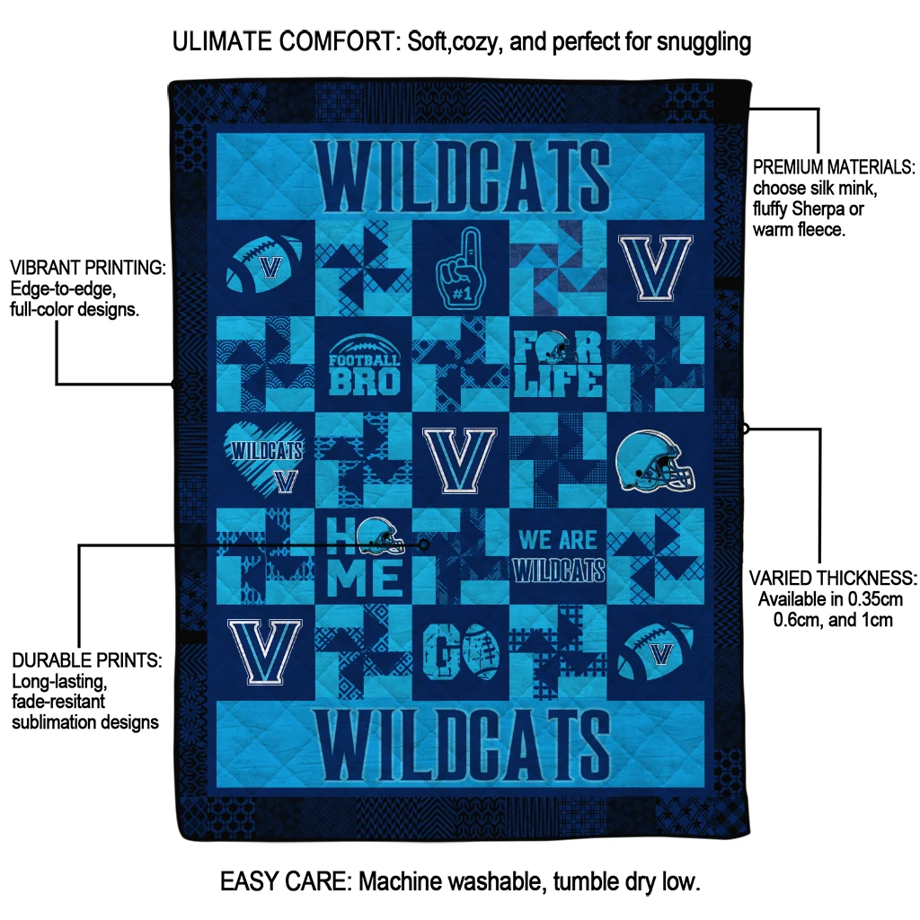 Wrap yourself in warmth and pride with the Villanova Wildcats Helmet Heart Navy Quilt Blanket from the Villanova Wildcats Blankets collection at Yes That Blanket. Made from 100% premium quilting-weight polyester blended with a touch of microfiber, this quilt offers a smooth, soft finish you’ll love. Choose between two quilting styles—Stipple or Diagonal—and enjoy the comfort of a cotton-filled layer inside that adds extra coziness for every season. The border is available in classic black or white, giving your design a clean, timeless edge.