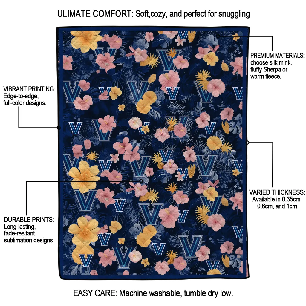 Wrap yourself in warmth and pride with the Villanova Wildcats Hibiscus Foliage Navy Quilt Blanket from the Villanova Wildcats Blankets collection at Yes That Blanket. Made from 100% premium quilting-weight polyester blended with a touch of microfiber, this quilt offers a smooth, soft finish you’ll love. Choose between two quilting styles—Stipple or Diagonal—and enjoy the comfort of a cotton-filled layer inside that adds extra coziness for every season. The border is available in classic black or white, giving your design a clean, timeless edge.