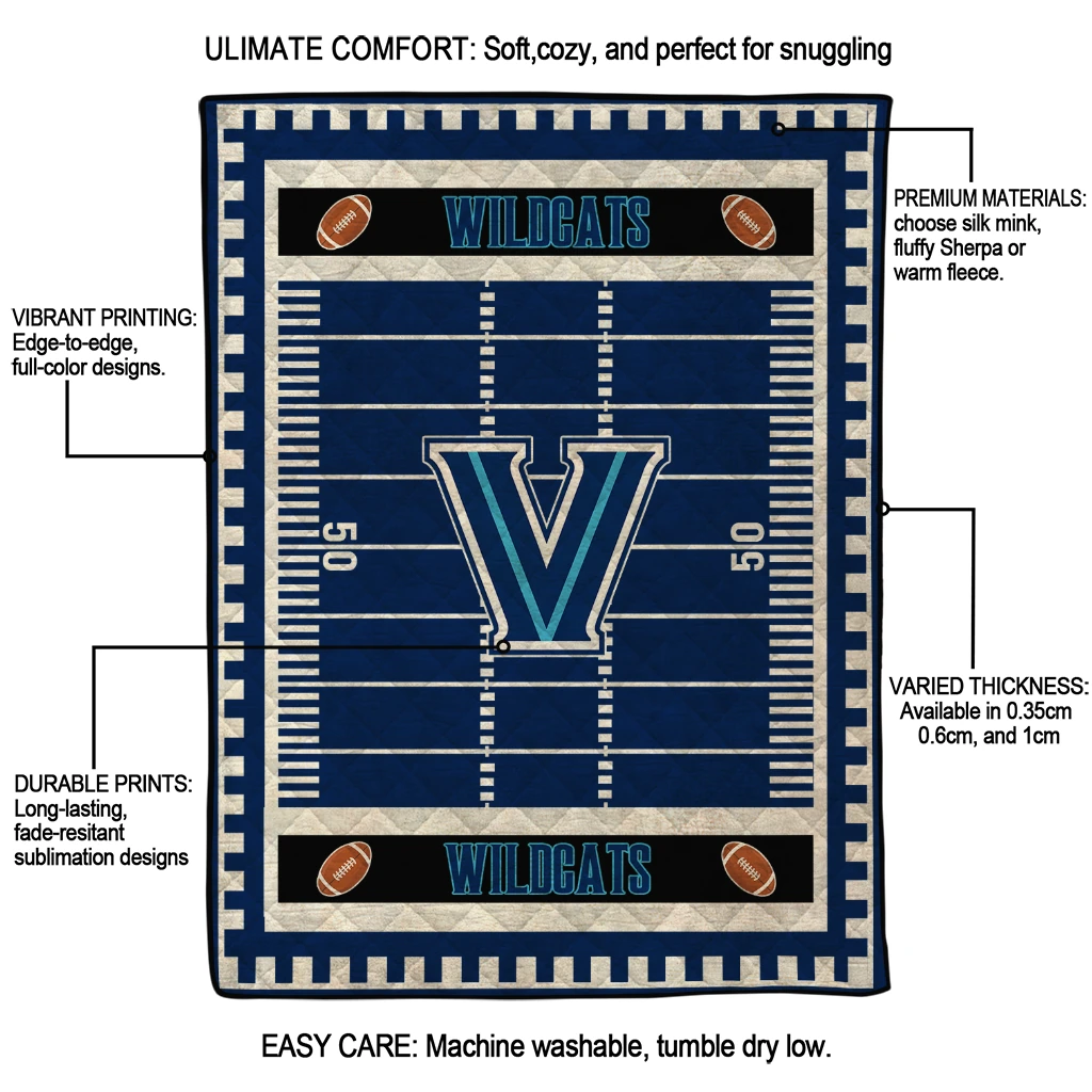 Wrap yourself in warmth and pride with the Villanova Wildcats Mickey Player Navy Quilt Blanket from the Villanova Wildcats Blankets collection at Yes That Blanket. Made from 100% premium quilting-weight polyester blended with a touch of microfiber, this quilt offers a smooth, soft finish you’ll love. Choose between two quilting styles—Stipple or Diagonal—and enjoy the comfort of a cotton-filled layer inside that adds extra coziness for every season. The border is available in classic black or white, giving your design a clean, timeless edge.