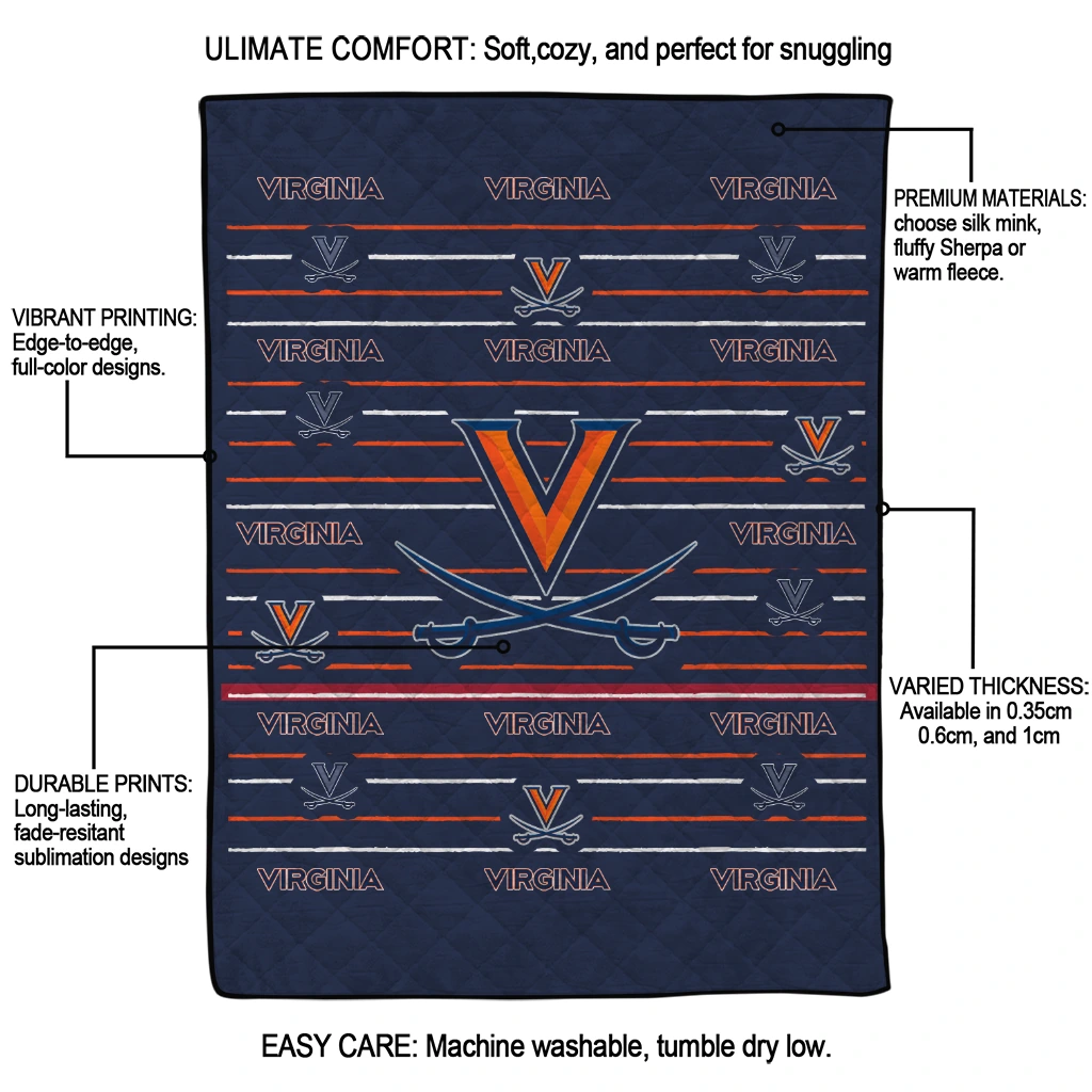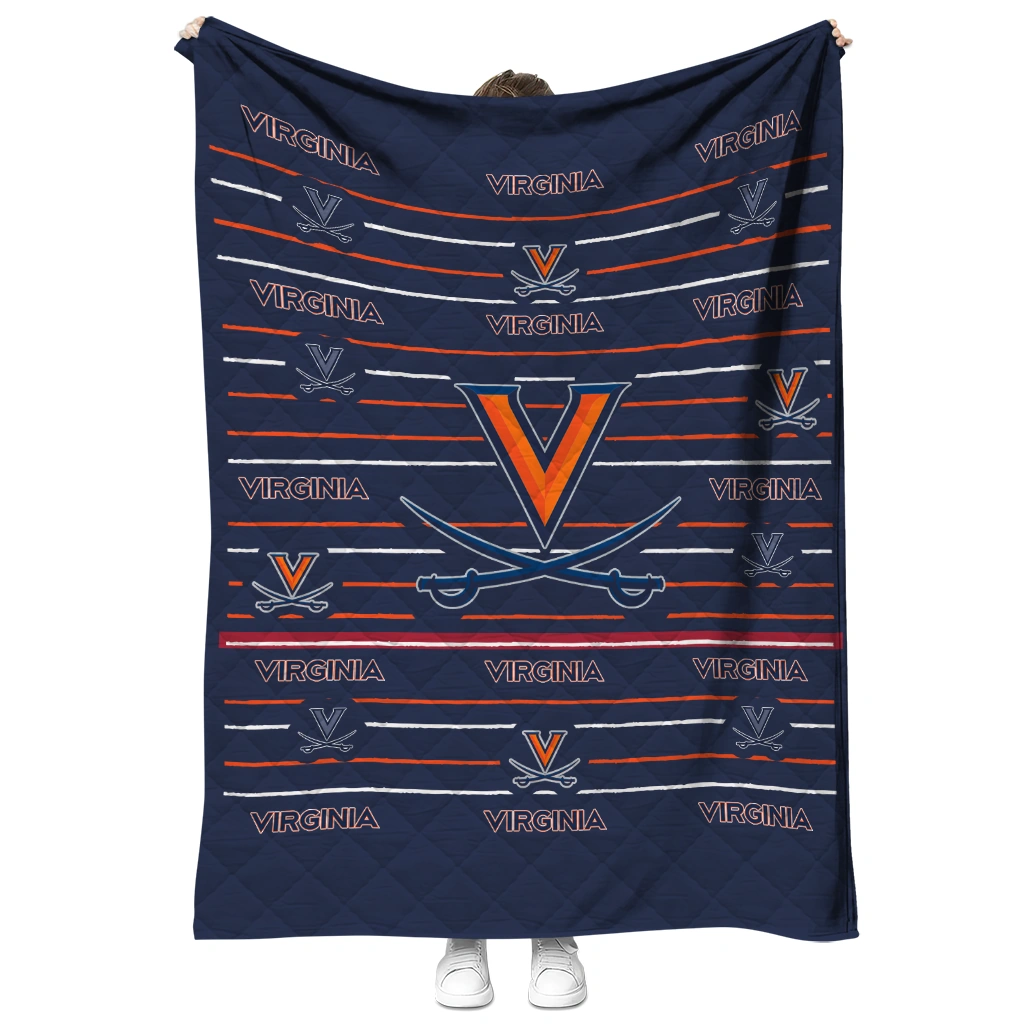Wrap yourself in warmth and pride with the Virginia Cavaliers Handdrawn Stripes Blue Quilt Blanket from the Virginia Cavaliers Blankets collection at Yes That Blanket. Made from 100% premium quilting-weight polyester blended with a touch of microfiber, this quilt offers a smooth, soft finish you’ll love. Choose between two quilting styles—Stipple or Diagonal—and enjoy the comfort of a cotton-filled layer inside that adds extra coziness for every season. The border is available in classic black or white, giving your design a clean, timeless edge.