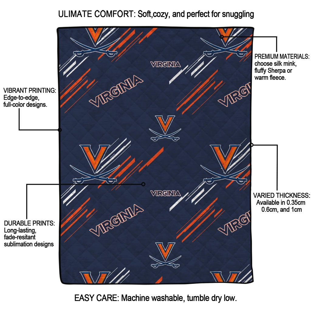 Wrap yourself in warmth and pride with the Virginia Cavaliers Sketch Lines Blue Quilt Blanket from the Virginia Cavaliers Blankets collection at Yes That Blanket. Made from 100% premium quilting-weight polyester blended with a touch of microfiber, this quilt offers a smooth, soft finish you’ll love. Choose between two quilting styles—Stipple or Diagonal—and enjoy the comfort of a cotton-filled layer inside that adds extra coziness for every season. The border is available in classic black or white, giving your design a clean, timeless edge.