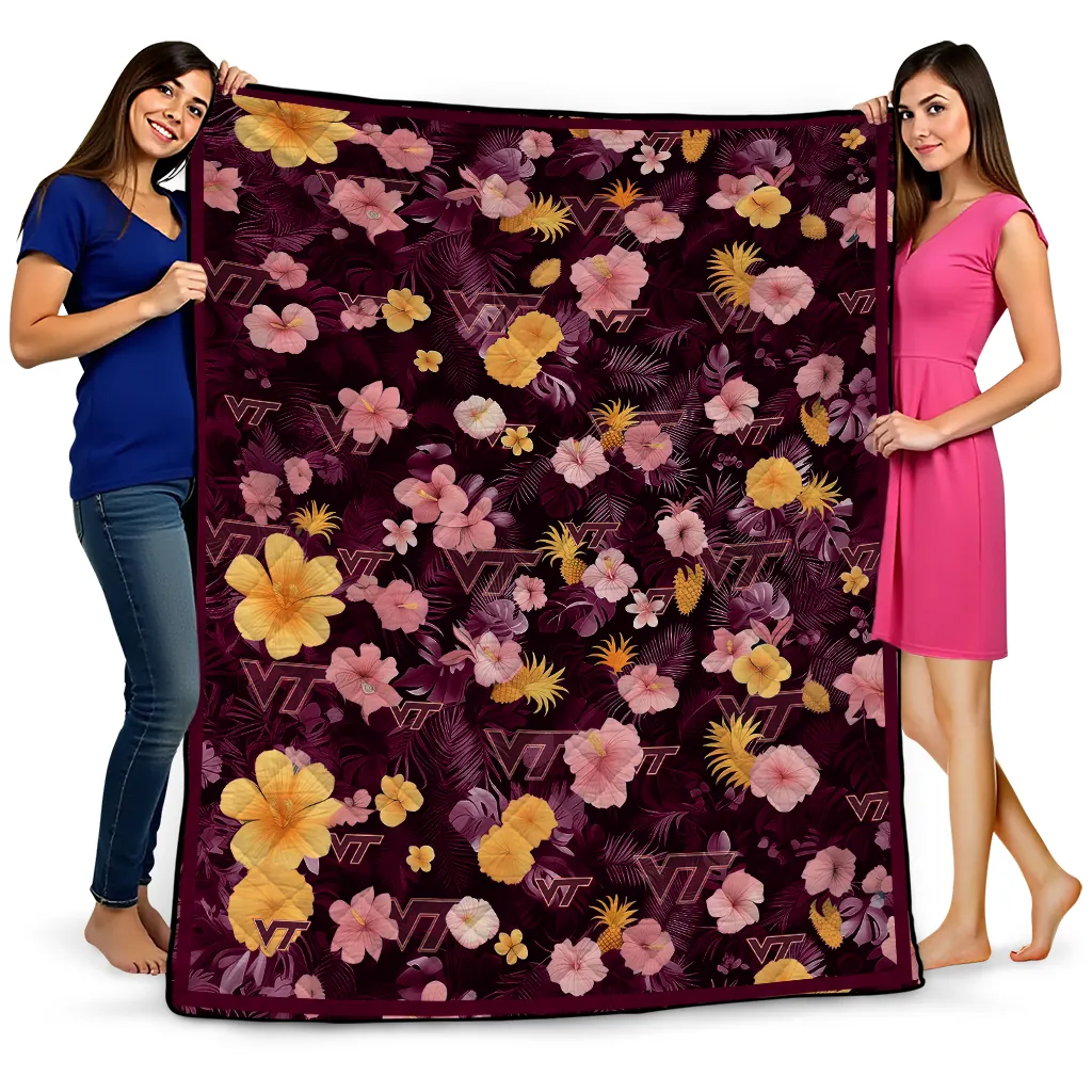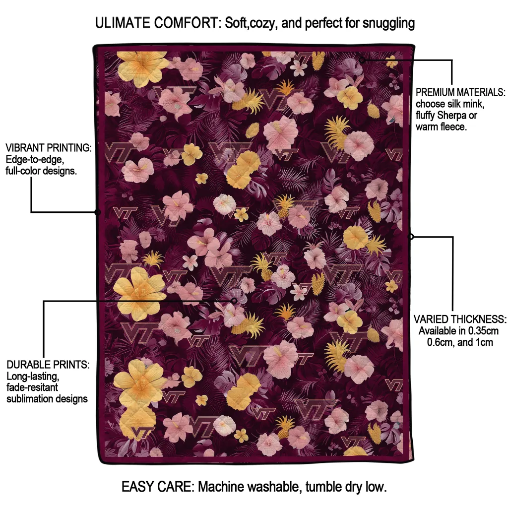 Wrap yourself in warmth and pride with the Virginia Tech Hokies Hibiscus Foliage Maroon Quilt Blanket from the Virginia Tech Hokies Blankets collection at Yes That Blanket. Made from 100% premium quilting-weight polyester blended with a touch of microfiber, this quilt offers a smooth, soft finish you’ll love. Choose between two quilting styles—Stipple or Diagonal—and enjoy the comfort of a cotton-filled layer inside that adds extra coziness for every season. The border is available in classic black or white, giving your design a clean, timeless edge.