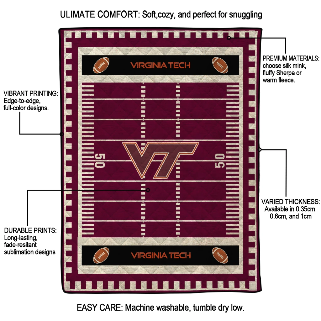 Wrap yourself in warmth and pride with the Virginia Tech Hokies Mickey Player Maroon Quilt Blanket from the Virginia Tech Hokies Blankets collection at Yes That Blanket. Made from 100% premium quilting-weight polyester blended with a touch of microfiber, this quilt offers a smooth, soft finish you’ll love. Choose between two quilting styles—Stipple or Diagonal—and enjoy the comfort of a cotton-filled layer inside that adds extra coziness for every season. The border is available in classic black or white, giving your design a clean, timeless edge.