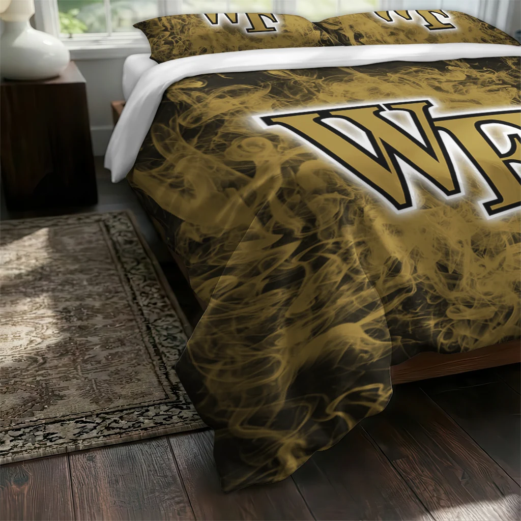 The Wake Forest Demon Deacons Bedding Set – Red Mist Black Gold makes your room feel complete, warm, and overflowing with team pride. Designed for true fans, this bedding set from the Wake Forest Demon Deacons Bedding Sets collection at Yes That Blanket turns your sanctuary into a cozy retreat where sport style meets ultimate relaxation. Experience the perfect blend of comfort and passion every night with a finish so soft, you’ll never want to leave.