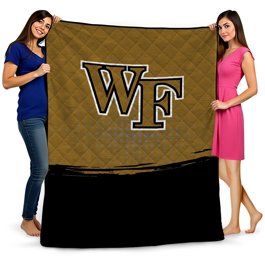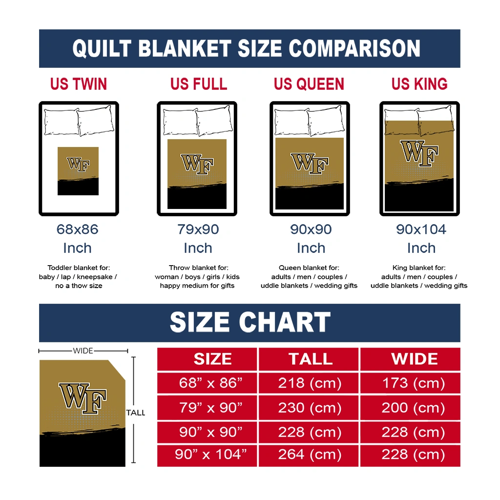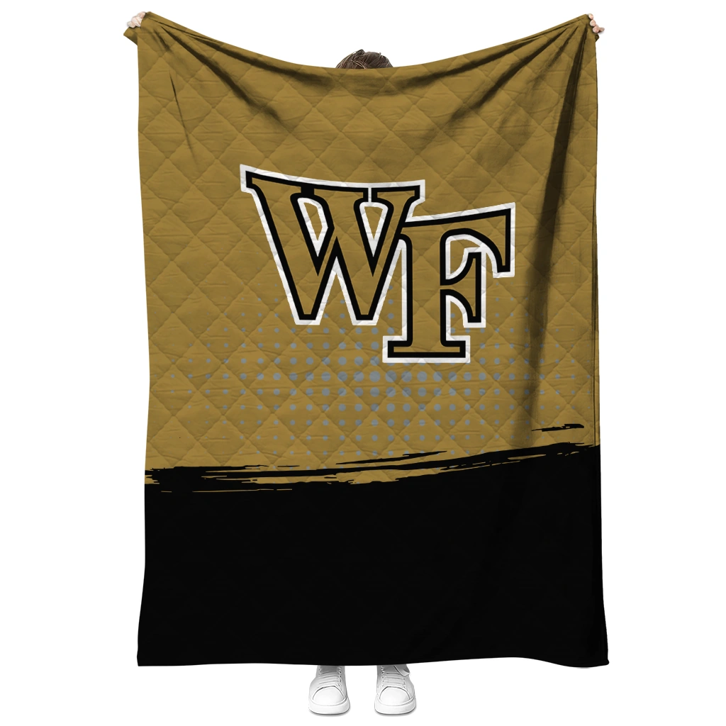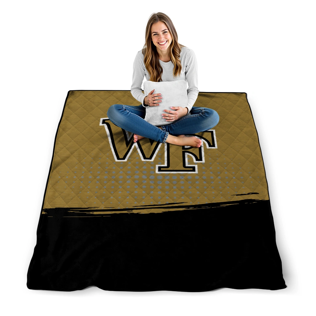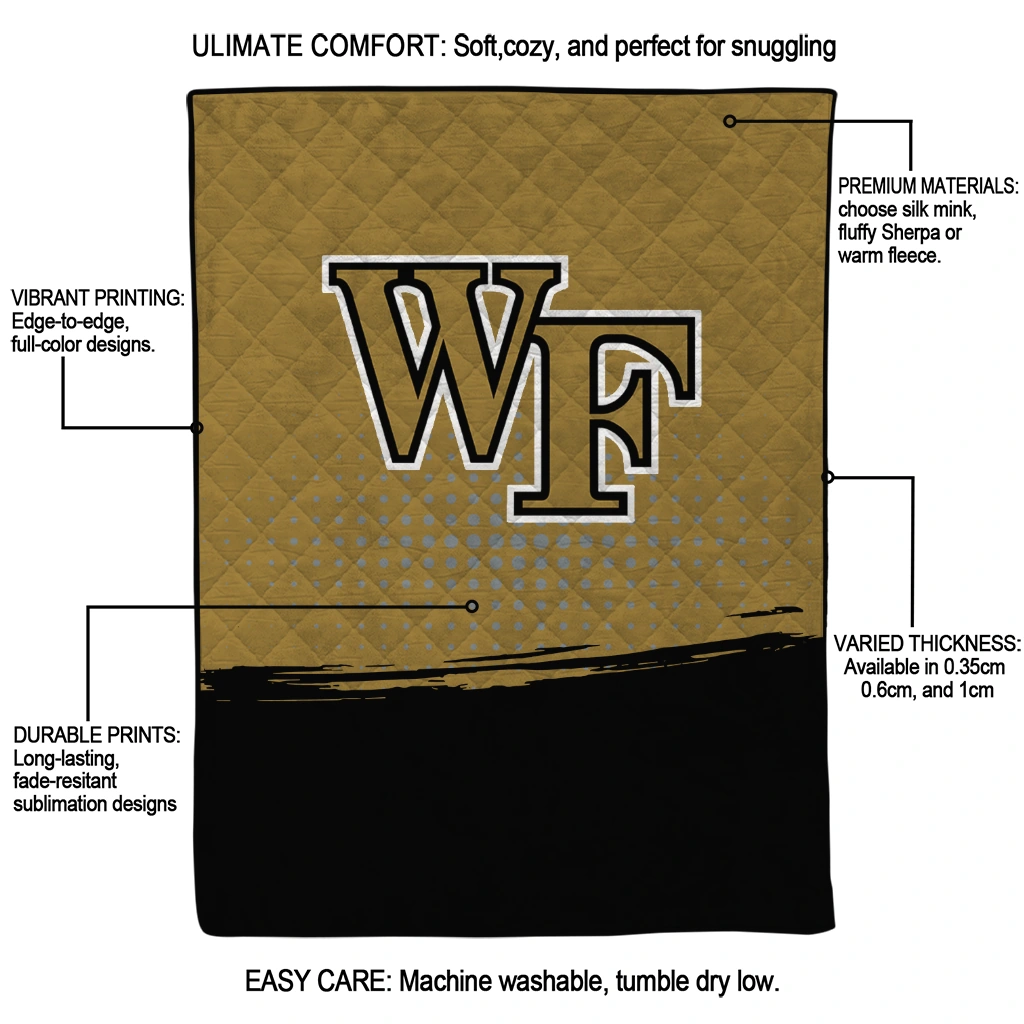 Wrap yourself in warmth and pride with the Wake Forest Demon Deacons Dot Illusion Gold Quilt Blanket from the Wake Forest Demon Deacons Blankets collection at Yes That Blanket. Made from 100% premium quilting-weight polyester blended with a touch of microfiber, this quilt offers a smooth, soft finish you’ll love. Choose between two quilting styles—Stipple or Diagonal—and enjoy the comfort of a cotton-filled layer inside that adds extra coziness for every season. The border is available in classic black or white, giving your design a clean, timeless edge.