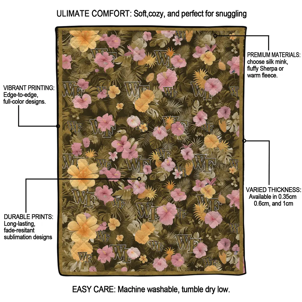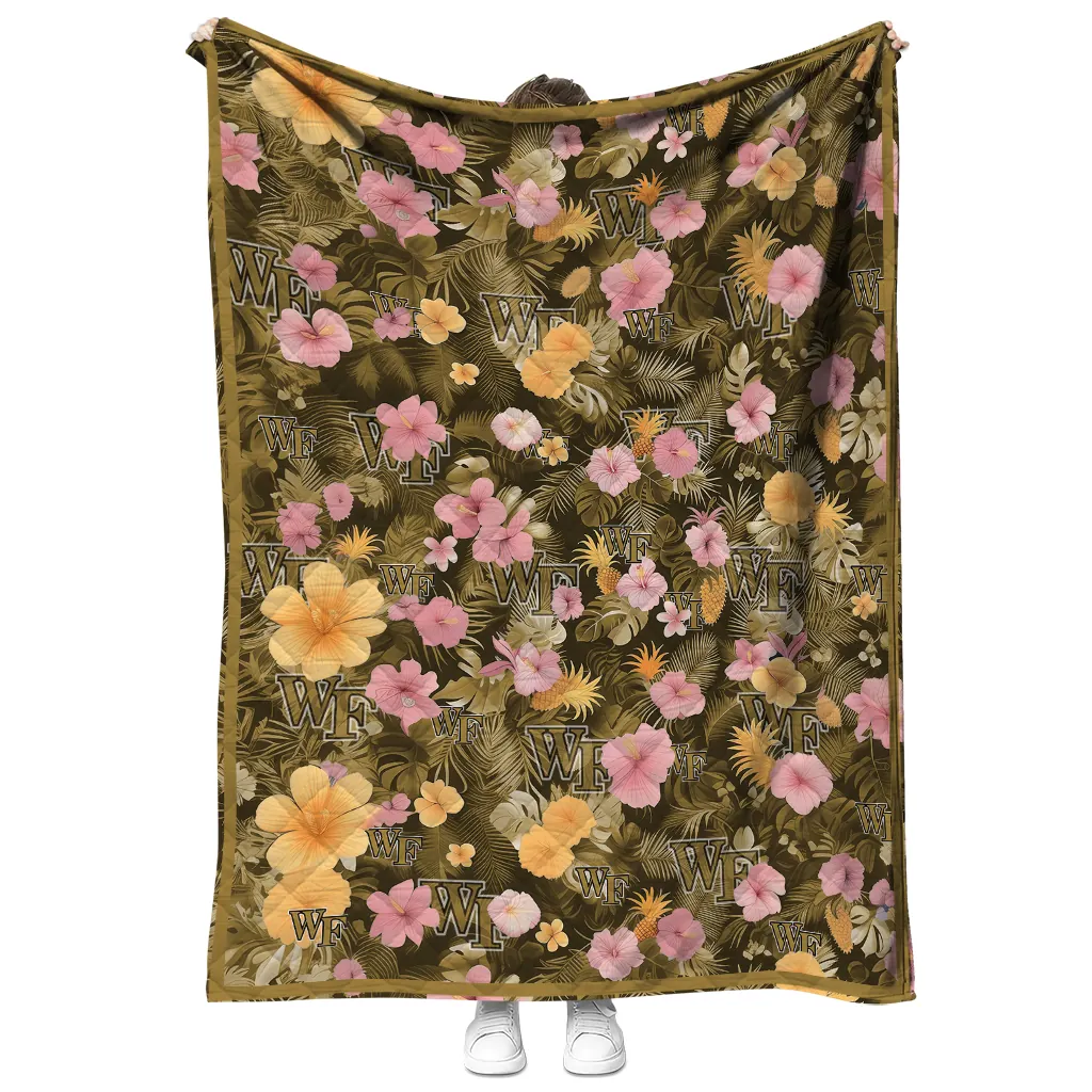 Wake Forest Demon Deacons Hibiscus Foliage Gold Quilt Blanket
