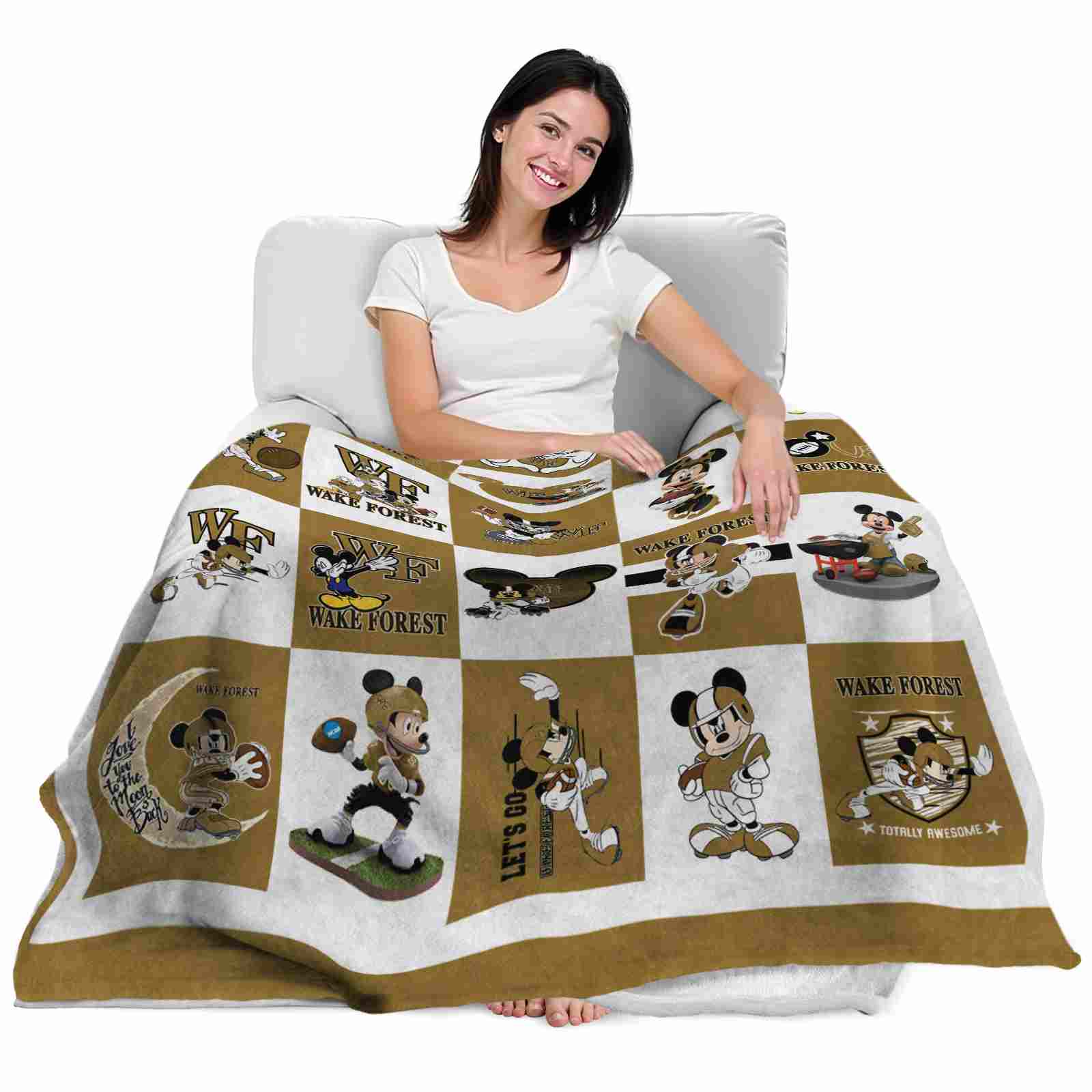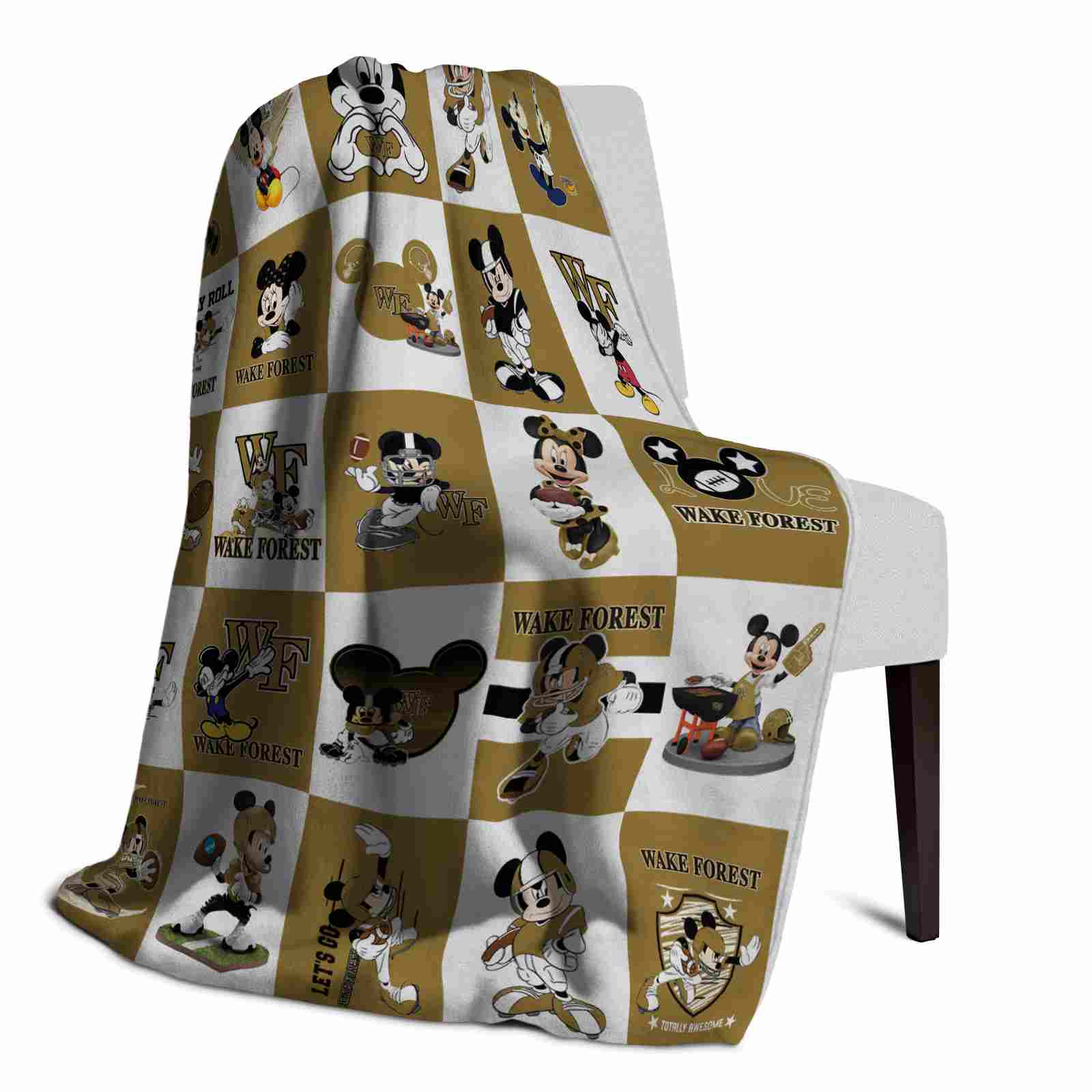 Wake Forest Demon Deacons Mickey Minnie Gold White Blanket