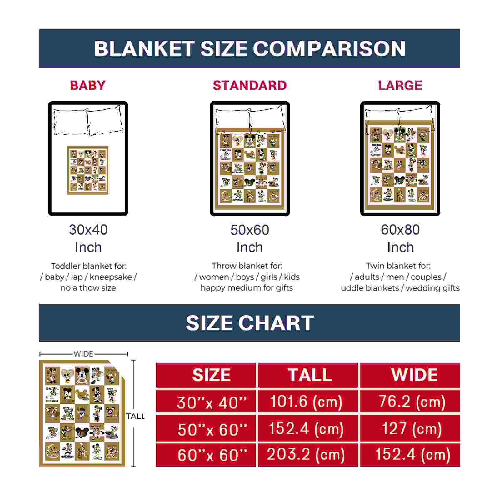 The Wake Forest Demon Deacons Mickey Minnie Gold White Blanket isn’t just a blanket—it’s your connection to the game. Snuggle up while reliving legendary plays or dreaming of future championships. Its bold, team-inspired designs keep your love for the sport front and center, while its easy-care durability means it’s always ready for your next adventure. From cheering at home to showcasing your loyalty on the go, this item of NCAA Blankets collection is made for fans who live and breathe the game.