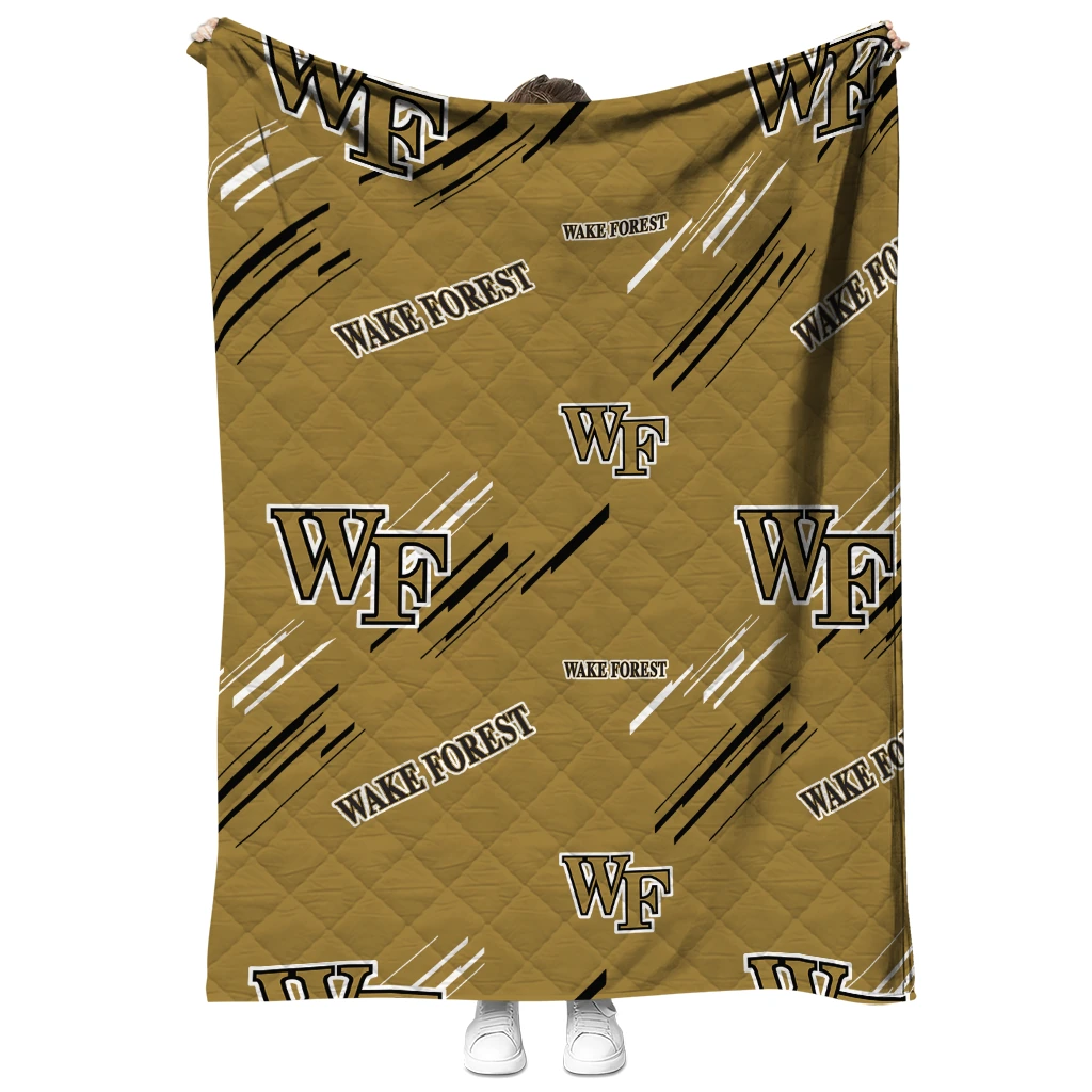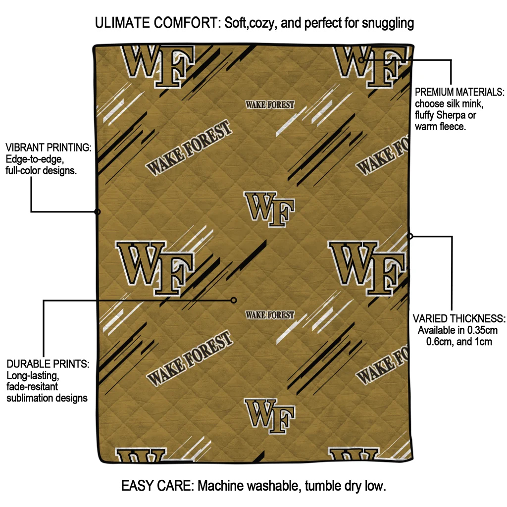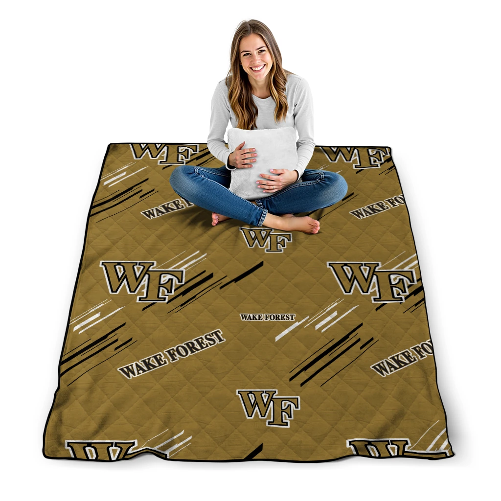 Wrap yourself in warmth and pride with the Wake Forest Demon Deacons Sketch Lines Gold Quilt Blanket from the Wake Forest Demon Deacons Blankets collection at Yes That Blanket. Made from 100% premium quilting-weight polyester blended with a touch of microfiber, this quilt offers a smooth, soft finish you’ll love. Choose between two quilting styles—Stipple or Diagonal—and enjoy the comfort of a cotton-filled layer inside that adds extra coziness for every season. The border is available in classic black or white, giving your design a clean, timeless edge.