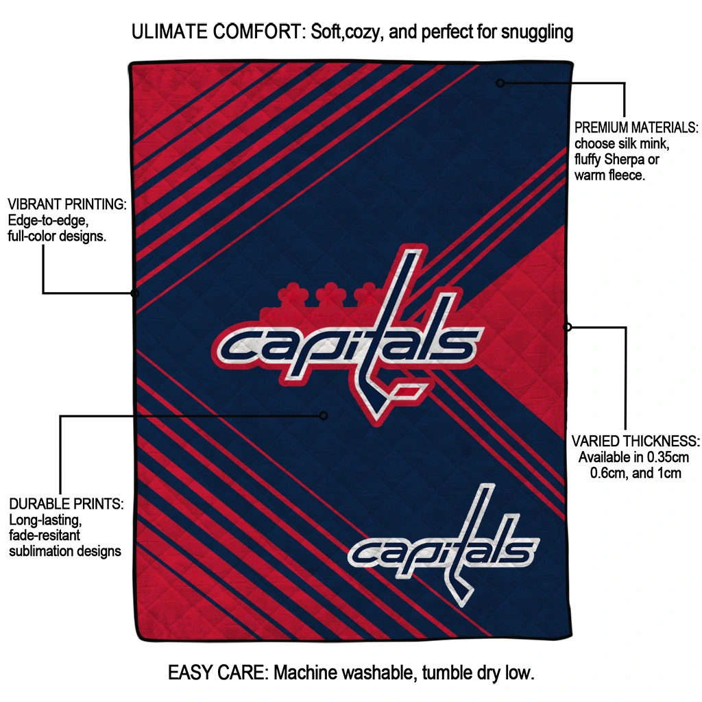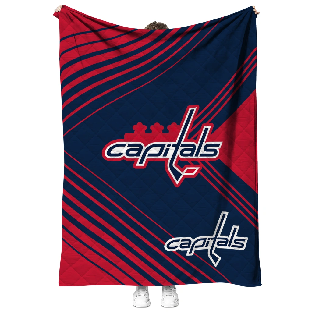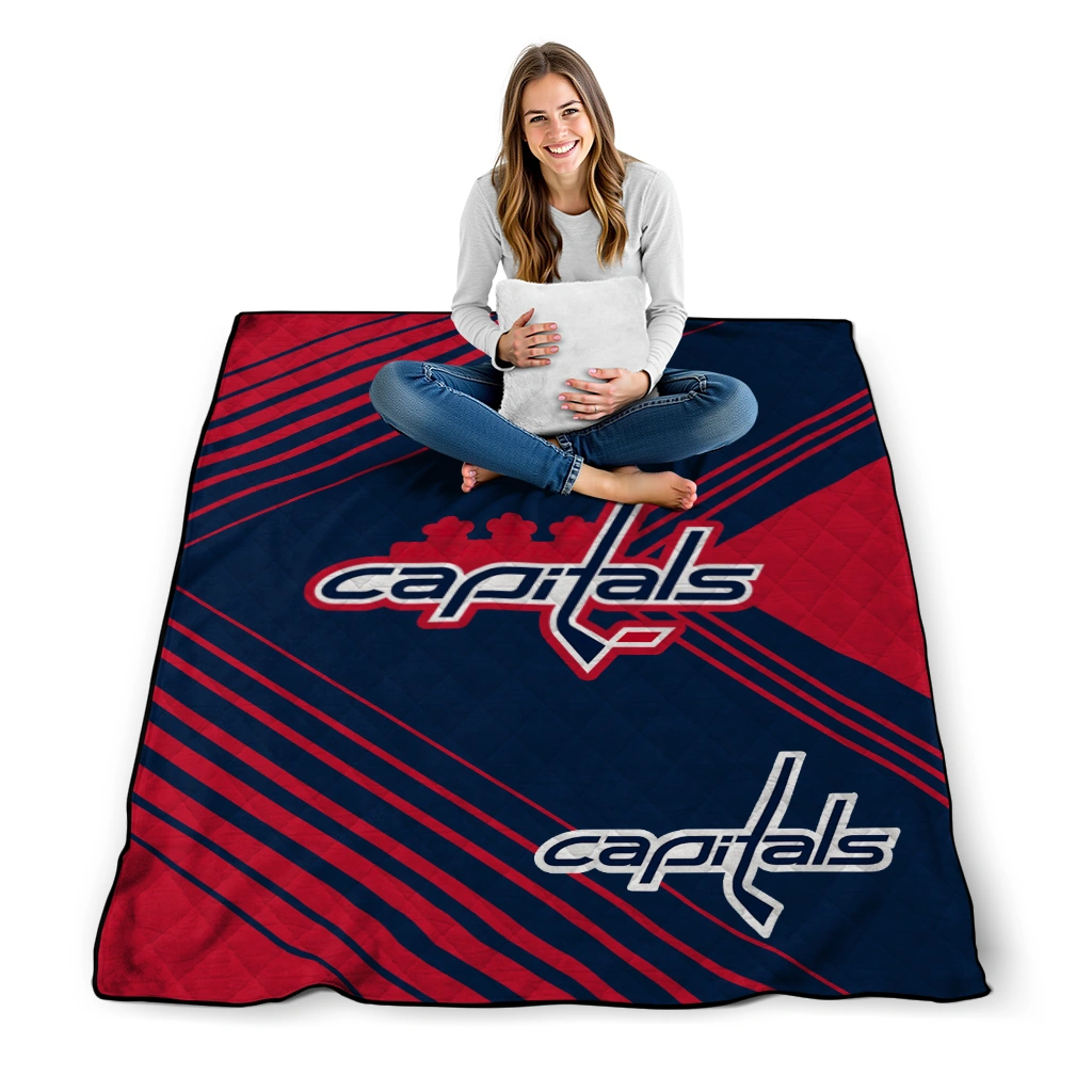Wrap yourself in warmth and pride with the Washington Capitals Arrow Layers Blue Quilt Blanket from the Washington Capitals Blankets collection at Yes That Blanket. Made from 100% premium quilting-weight polyester blended with a touch of microfiber, this quilt offers a smooth, soft finish you’ll love. Choose between two quilting styles—Stipple or Diagonal—and enjoy the comfort of a cotton-filled layer inside that adds extra coziness for every season. The border is available in classic black or white, giving your design a clean, timeless edge.