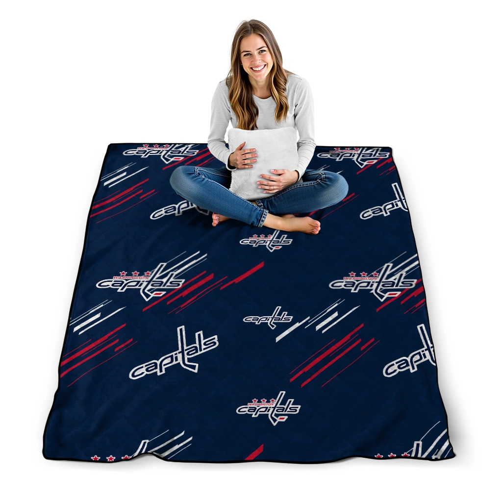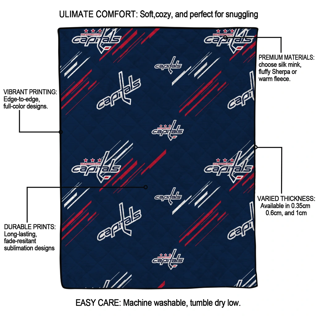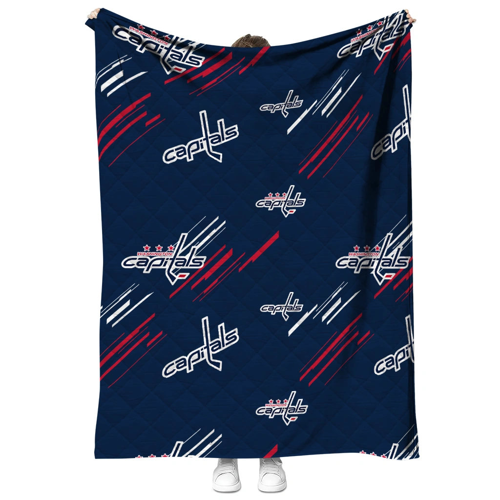 Washington Capitals Sketch Lines Blue Quilt Blanket