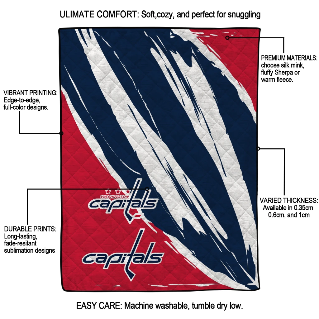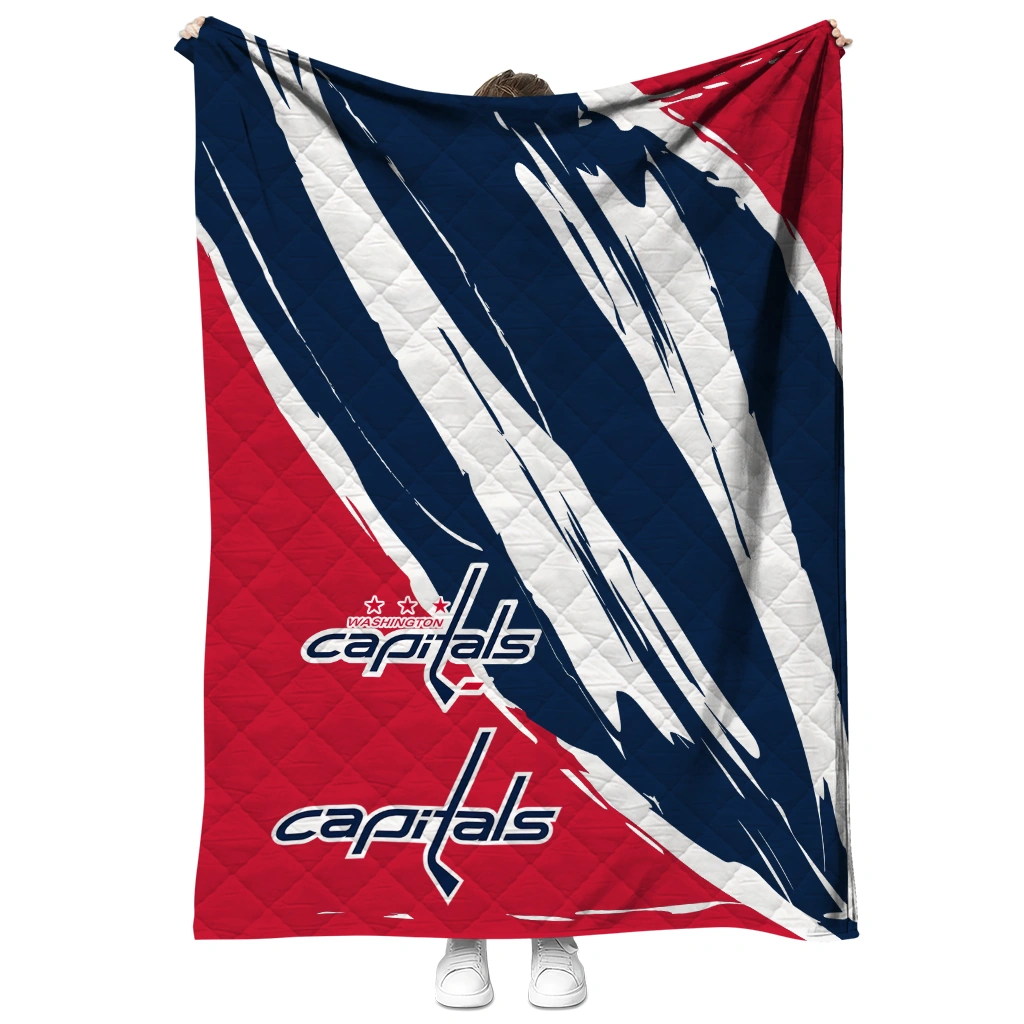 Wrap yourself in warmth and pride with the Washington Capitals Stroke Art Blue White Quilt Blanket from the Washington Capitals Blankets collection at Yes That Blanket. Made from 100% premium quilting-weight polyester blended with a touch of microfiber, this quilt offers a smooth, soft finish you’ll love. Choose between two quilting styles—Stipple or Diagonal—and enjoy the comfort of a cotton-filled layer inside that adds extra coziness for every season. The border is available in classic black or white, giving your design a clean, timeless edge.