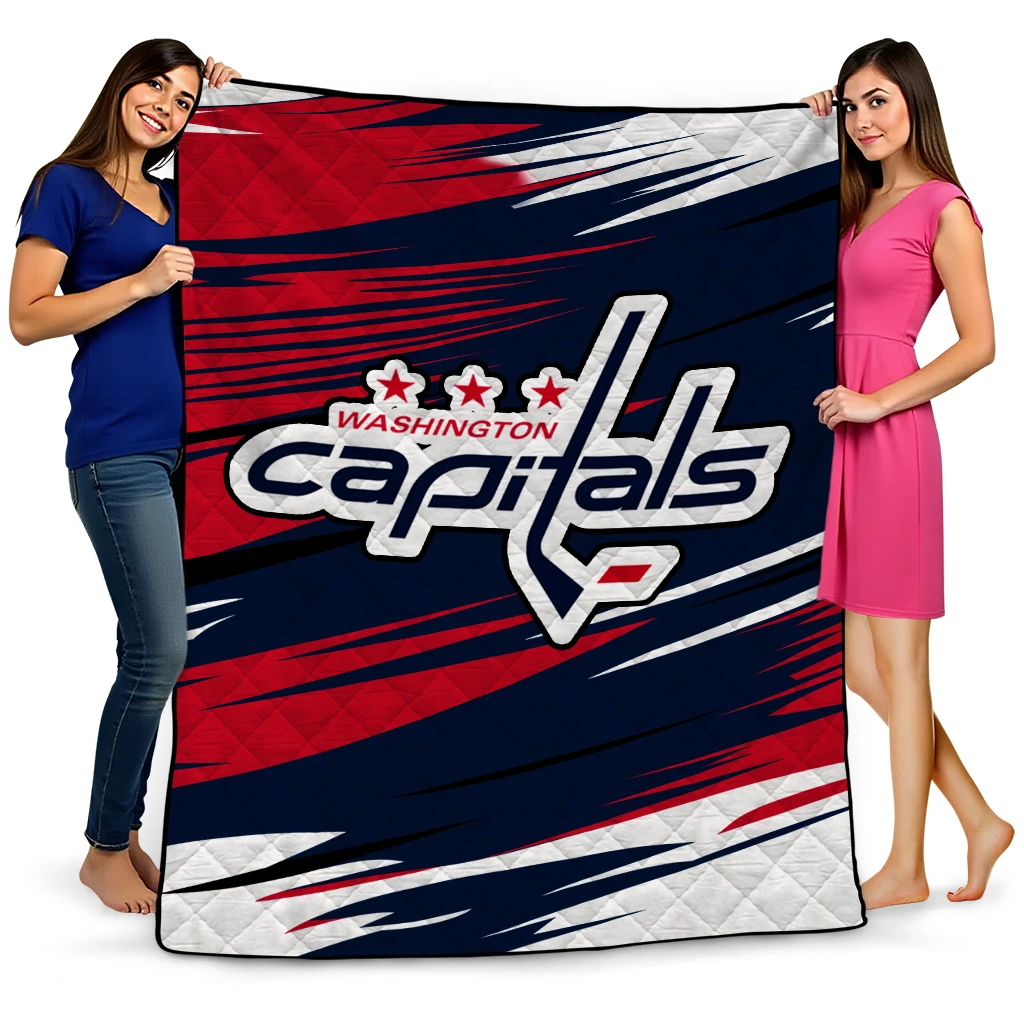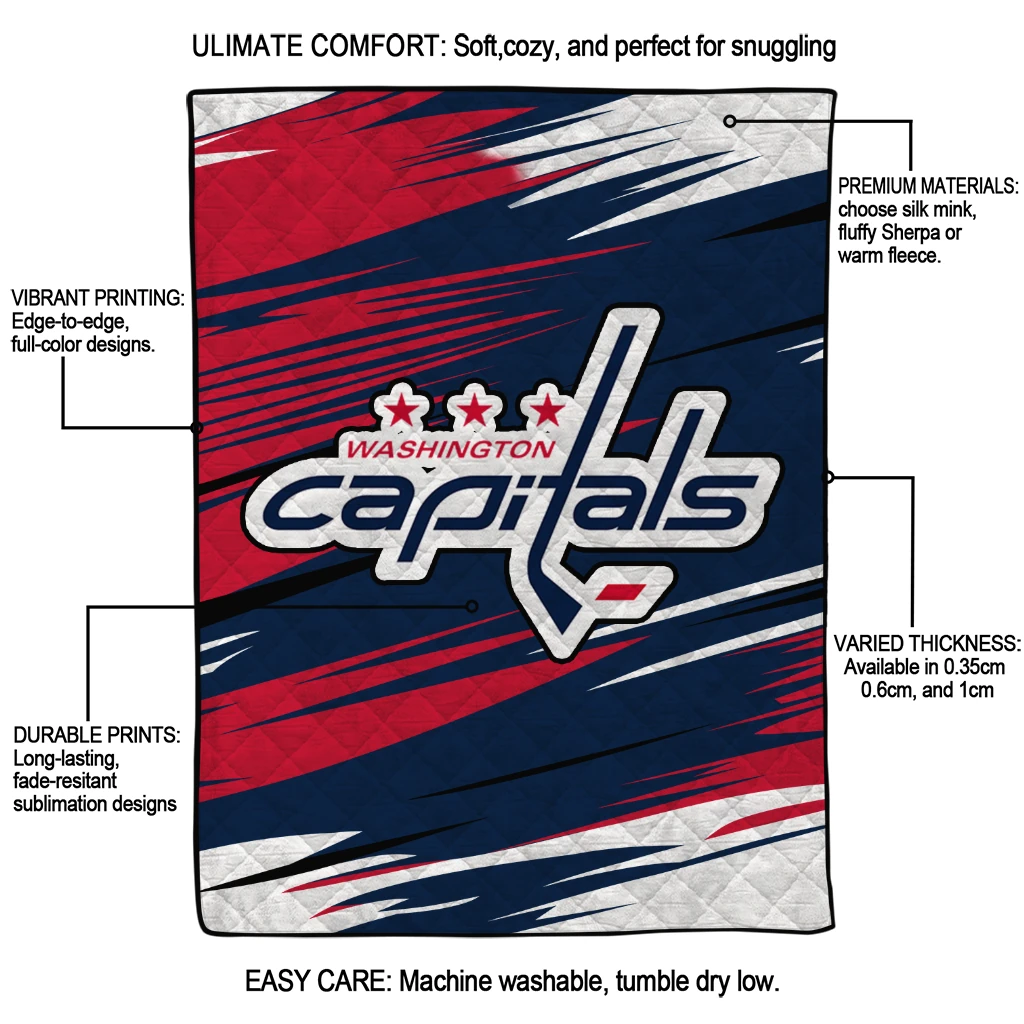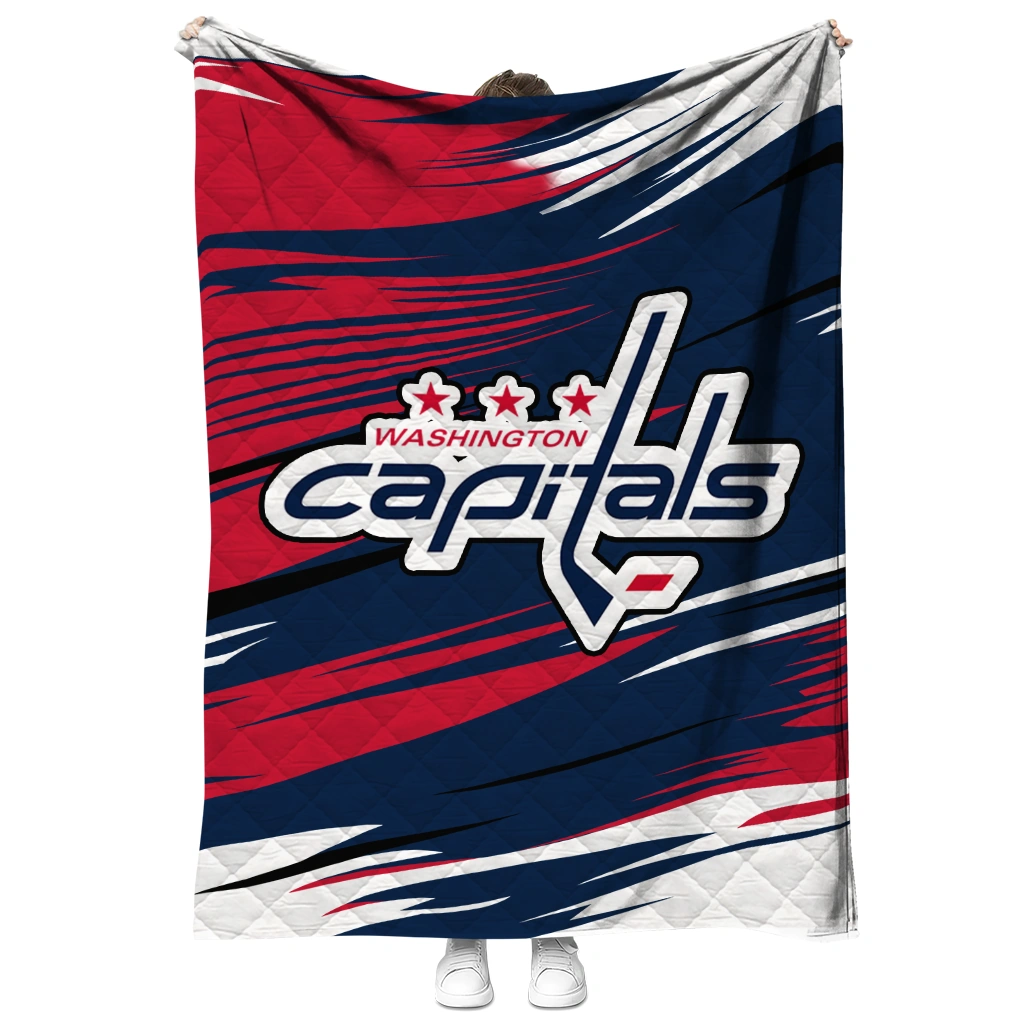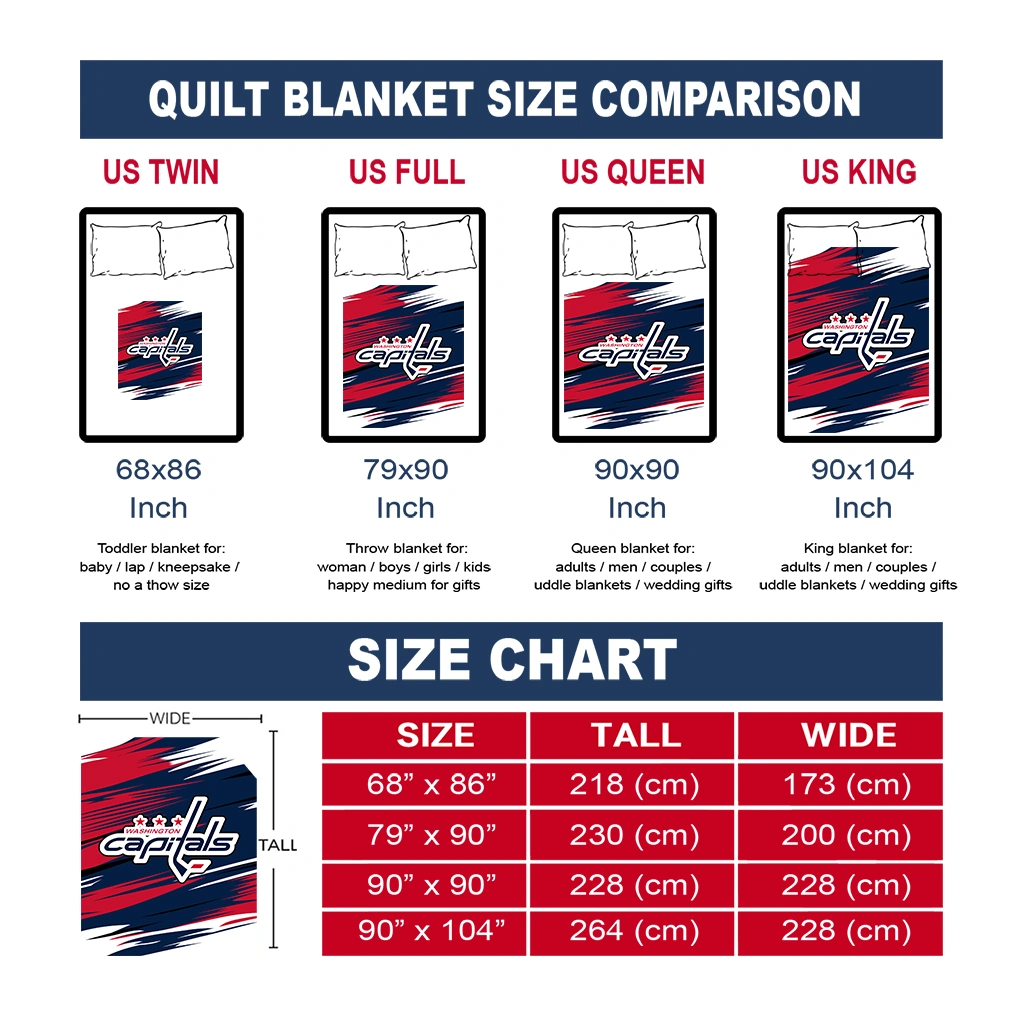 Wrap yourself in warmth and pride with the Washington Capitals Wild Lines Blue White Quilt Blanket from the Washington Capitals Blankets collection at Yes That Blanket. Made from 100% premium quilting-weight polyester blended with a touch of microfiber, this quilt offers a smooth, soft finish you’ll love. Choose between two quilting styles—Stipple or Diagonal—and enjoy the comfort of a cotton-filled layer inside that adds extra coziness for every season. The border is available in classic black or white, giving your design a clean, timeless edge.