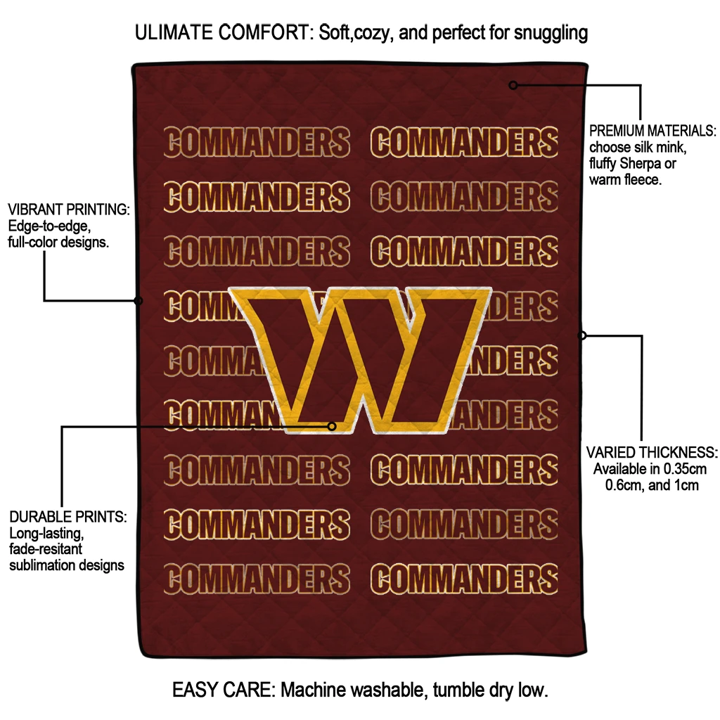 Washington Commanders Bold Red Burgundy Quilt Blanket