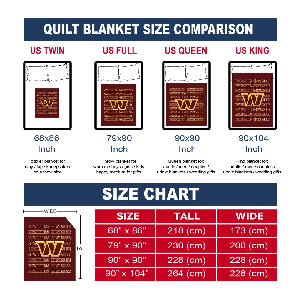 The Washington Commanders Bold Red Burgundy Quilt Blanket is more than a blanket—it’s everyday comfort, thoughtfully made. Crafted from premium quilting fabric with a soft microfiber touch, it offers a smooth hand-feel and lasting coziness. Layered quilting with a cotton-filled core provides adaptable warmth across seasons while maintaining a clean, tailored look on your bed or sofa.