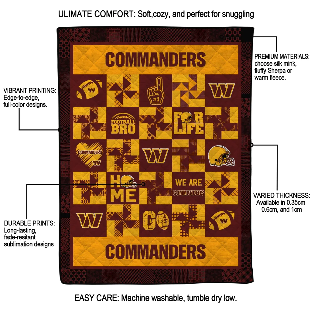 The Washington Commanders Helmet Heart Burgundy Quilt Blanket is more than a blanket—it’s everyday comfort, thoughtfully made. Crafted from premium quilting fabric with a soft microfiber touch, it offers a smooth hand-feel and lasting coziness. Layered quilting with a cotton-filled core provides adaptable warmth across seasons while maintaining a clean, tailored look on your bed or sofa.