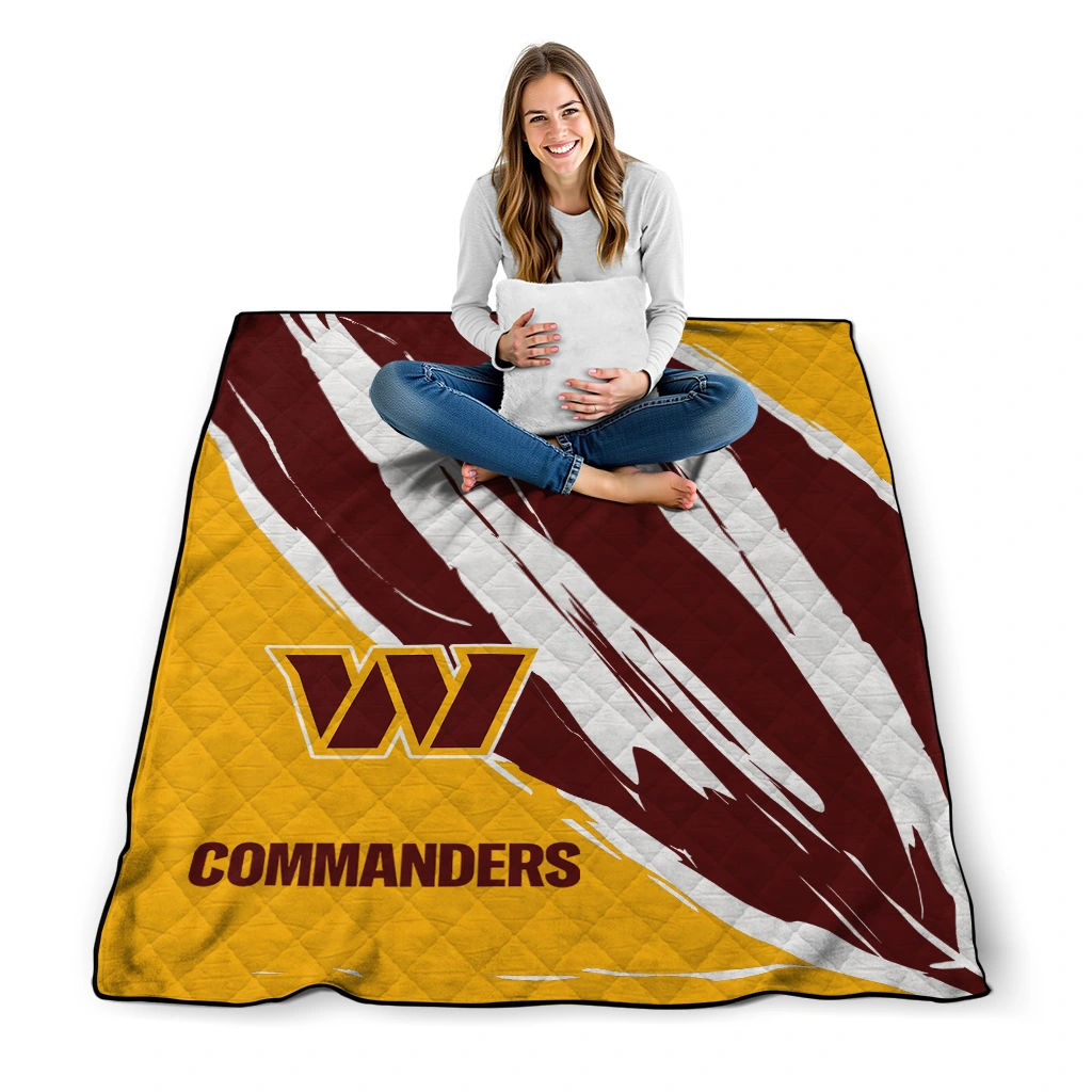 Washington Commanders Stroke Art Burgundy White Quilt Blanket