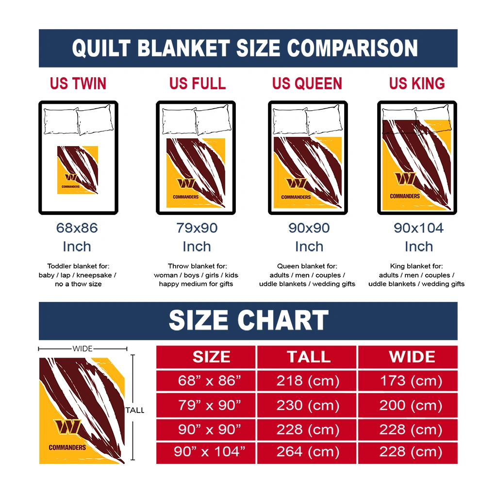 Wrap yourself in warmth and pride with the Washington Commanders Stroke Art Burgundy White Quilt Blanket from the Washington Commanders Blankets collection at Yes That Blanket. Made from 100% premium quilting-weight polyester blended with a touch of microfiber, this quilt offers a smooth, soft finish you’ll love. Choose between two quilting styles—Stipple or Diagonal—and enjoy the comfort of a cotton-filled layer inside that adds extra coziness for every season. The border is available in classic black or white, giving your design a clean, timeless edge.