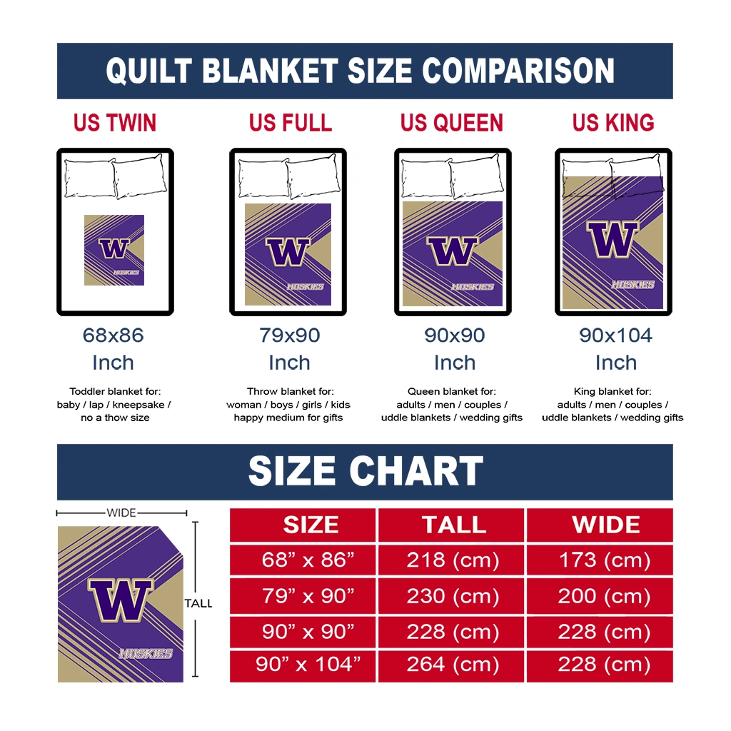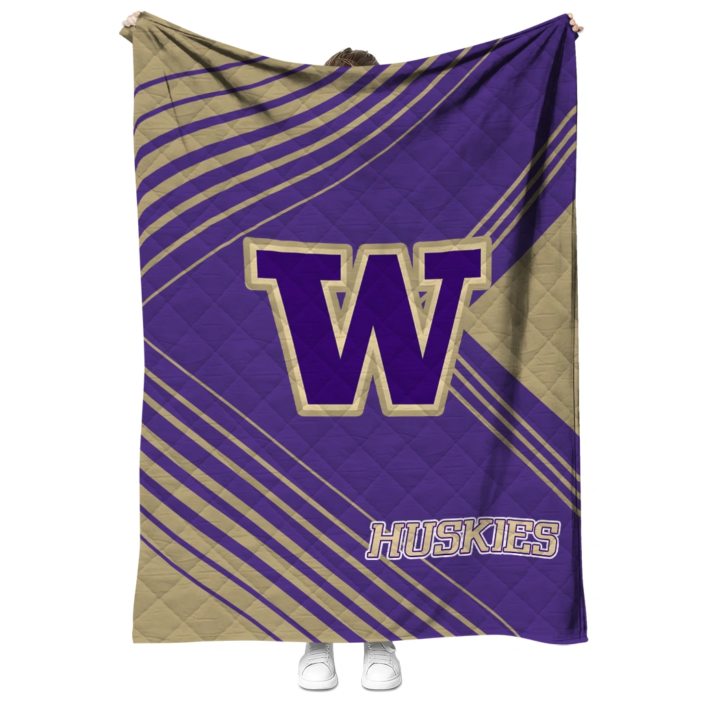 Wrap yourself in warmth and pride with the Washington Huskies Arrow Layers Purple Quilt Blanket from the Washington Huskies Blankets collection at Yes That Blanket. Made from 100% premium quilting-weight polyester blended with a touch of microfiber, this quilt offers a smooth, soft finish you’ll love. Choose between two quilting styles—Stipple or Diagonal—and enjoy the comfort of a cotton-filled layer inside that adds extra coziness for every season. The border is available in classic black or white, giving your design a clean, timeless edge.