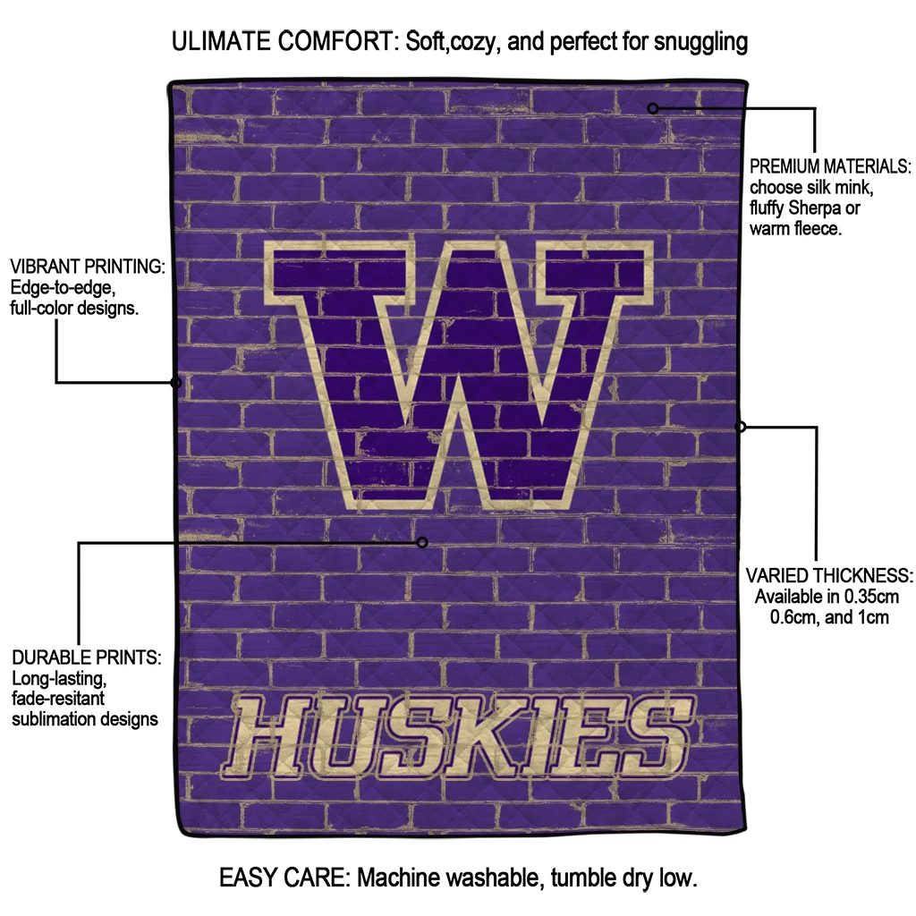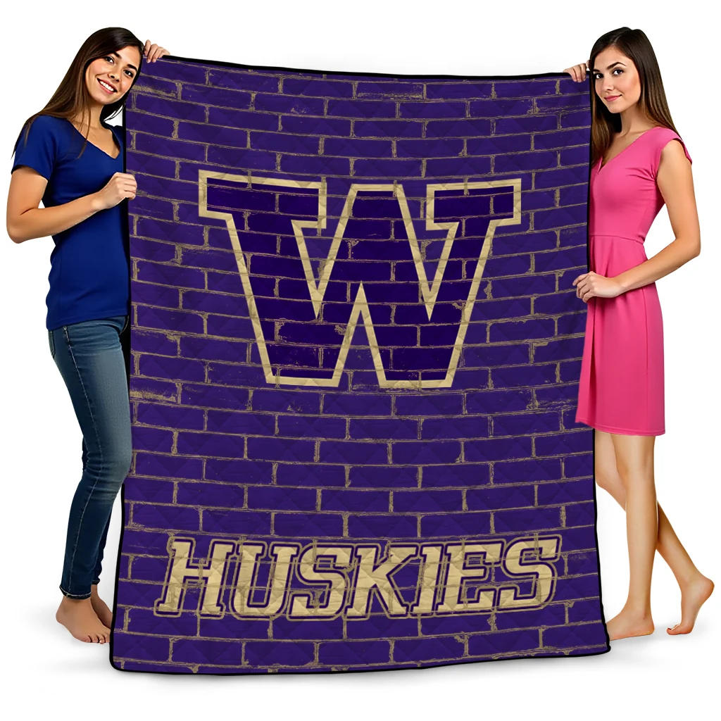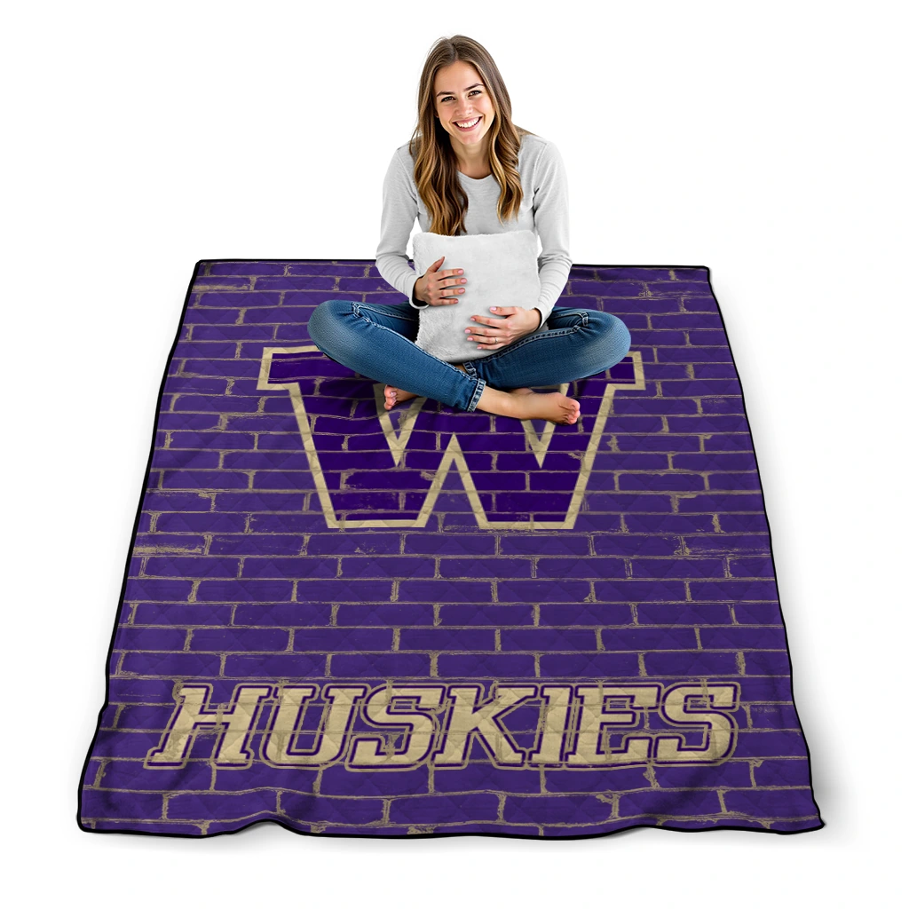 Washington Huskies Brick Grid Purple Quilt Blanket