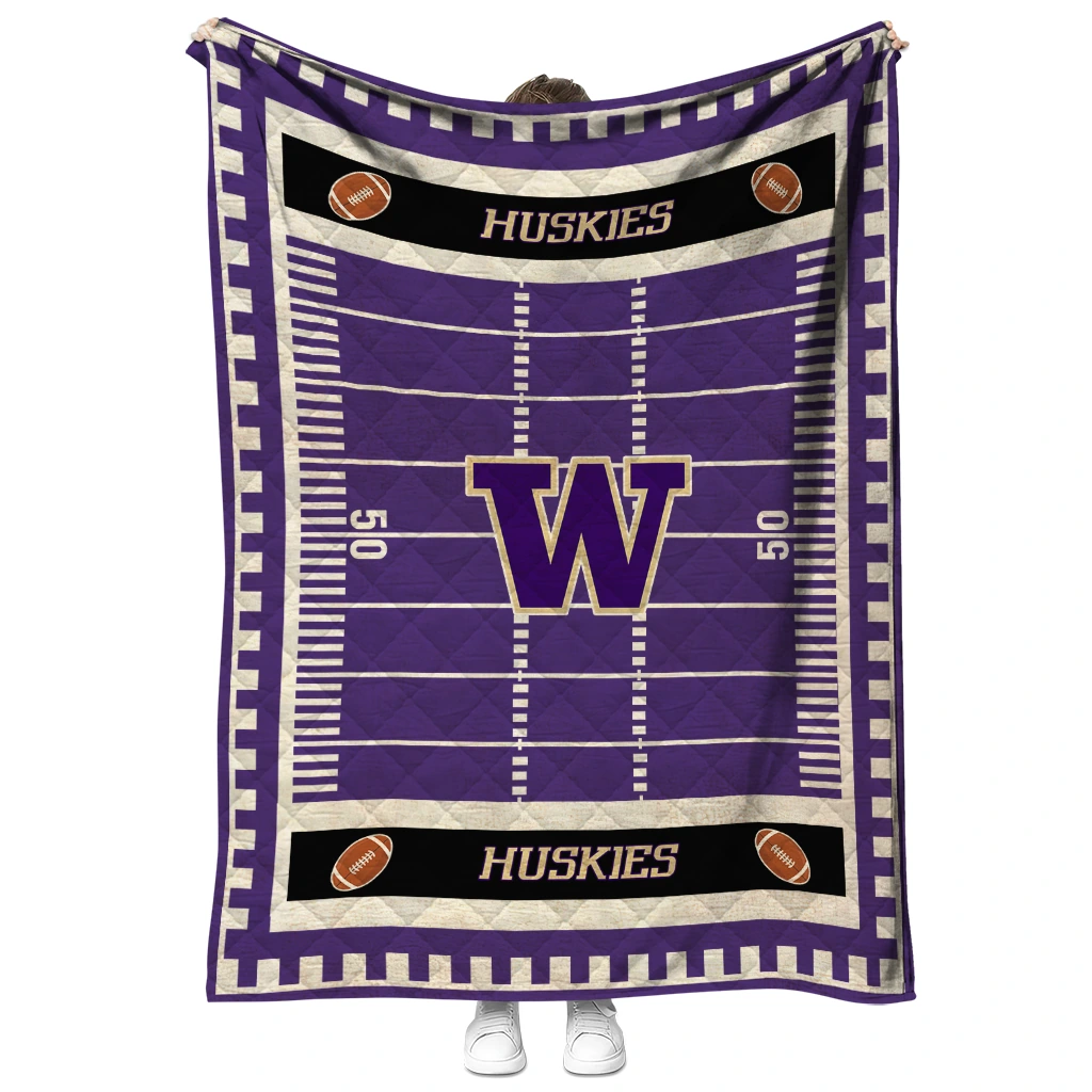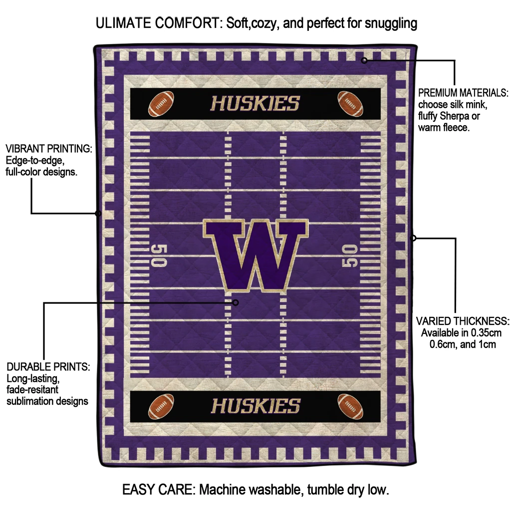 Wrap yourself in warmth and pride with the Washington Huskies Mickey Player Purple Quilt Blanket from the Washington Huskies Blankets collection at Yes That Blanket. Made from 100% premium quilting-weight polyester blended with a touch of microfiber, this quilt offers a smooth, soft finish you’ll love. Choose between two quilting styles—Stipple or Diagonal—and enjoy the comfort of a cotton-filled layer inside that adds extra coziness for every season. The border is available in classic black or white, giving your design a clean, timeless edge.