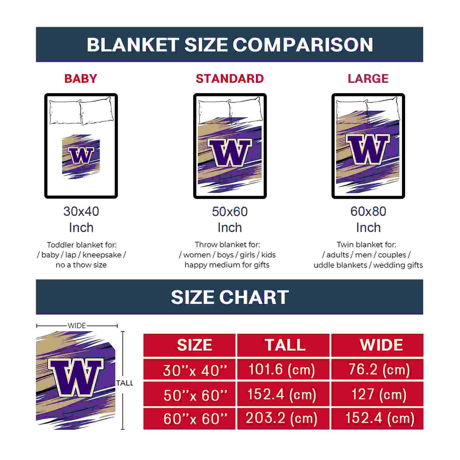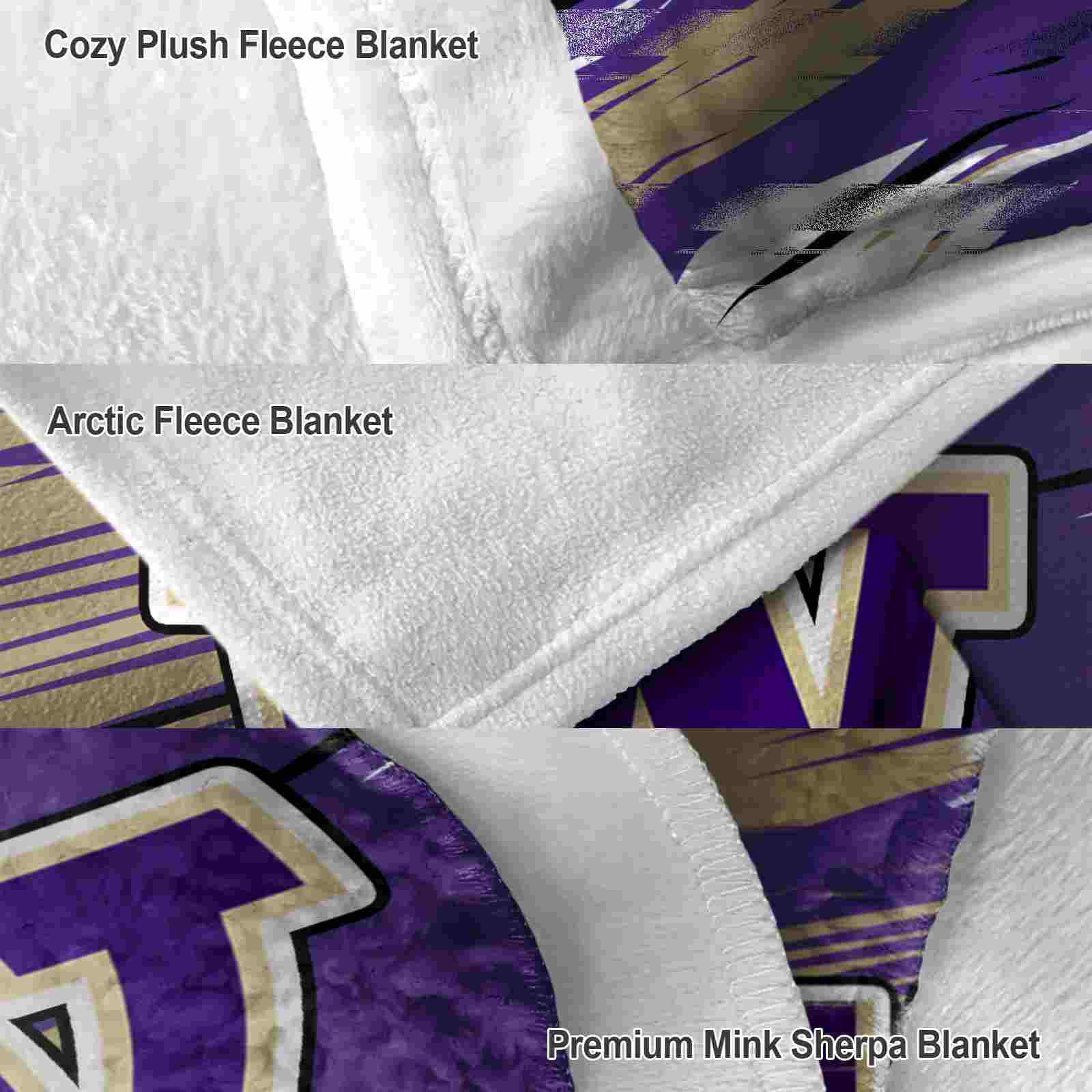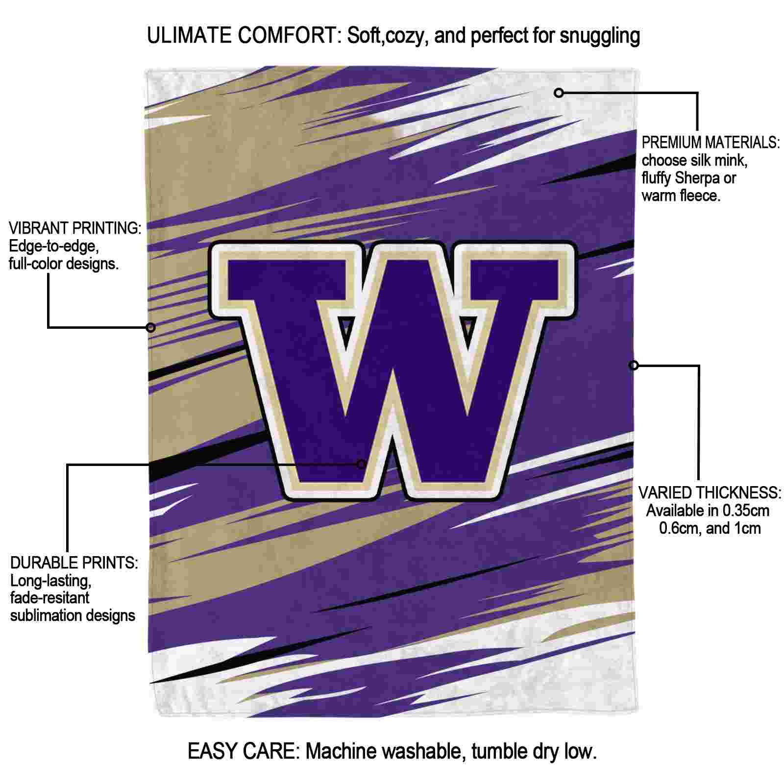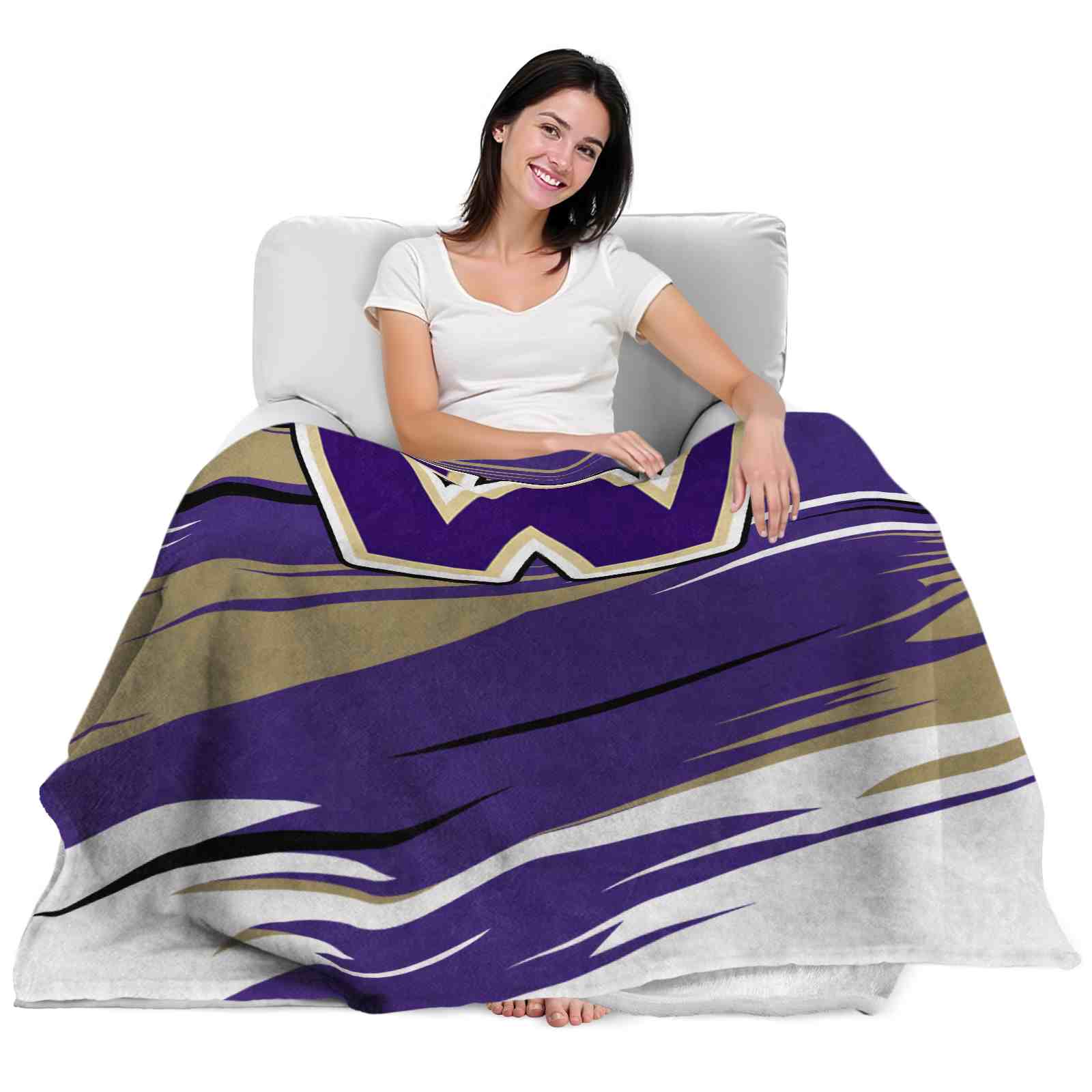 Without a doubt, the Washington Huskies Paint Streaks Purple White Blanket from Washington Huskies Blankets collection is offering true fans a chance to showcase passion in a cool way. Personalize it with your favorite team's logo or a meaningful name to make it uniquely yours. Isn't that great? The full-color print ensures vibrant, edge-to-edge designs, bringing your sports enthusiasm to life!