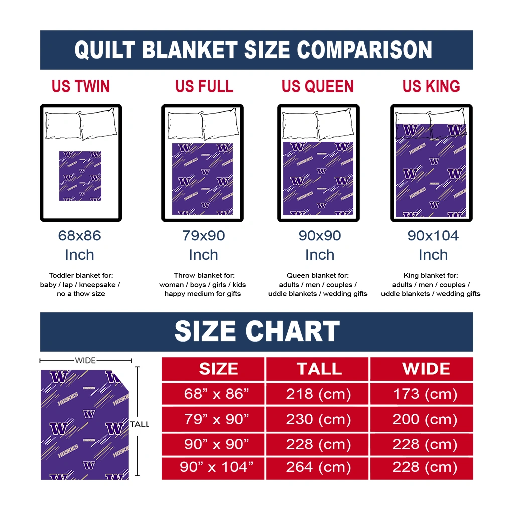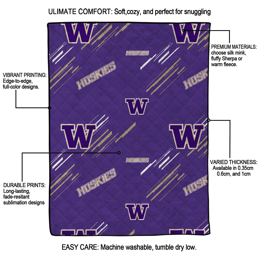 Wrap yourself in warmth and pride with the Washington Huskies Sketch Lines Purple Quilt Blanket from the Washington Huskies Blankets collection at Yes That Blanket. Made from 100% premium quilting-weight polyester blended with a touch of microfiber, this quilt offers a smooth, soft finish you’ll love. Choose between two quilting styles—Stipple or Diagonal—and enjoy the comfort of a cotton-filled layer inside that adds extra coziness for every season. The border is available in classic black or white, giving your design a clean, timeless edge.