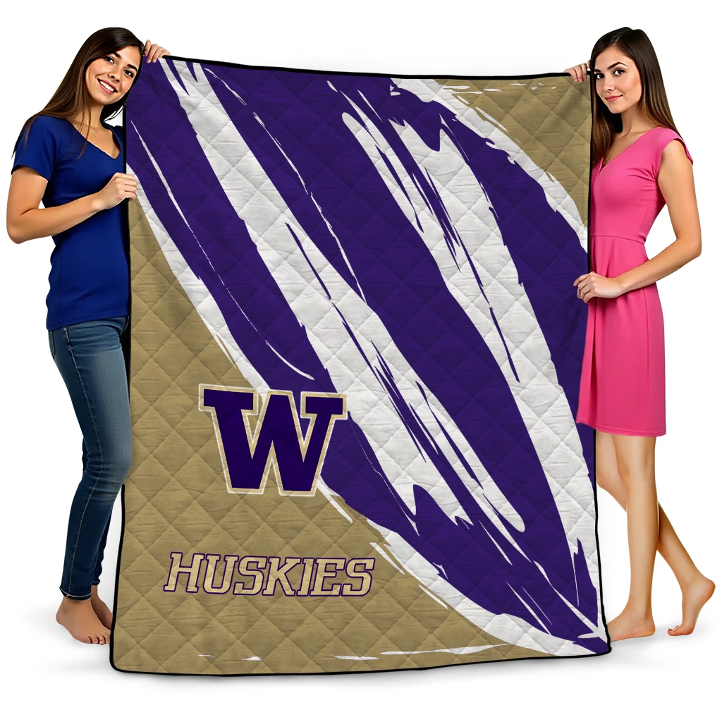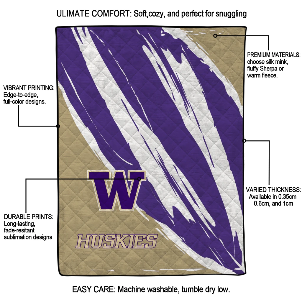 Wrap yourself in warmth and pride with the Washington Huskies Stroke Art Purple White Quilt Blanket from the Washington Huskies Blankets collection at Yes That Blanket. Made from 100% premium quilting-weight polyester blended with a touch of microfiber, this quilt offers a smooth, soft finish you’ll love. Choose between two quilting styles—Stipple or Diagonal—and enjoy the comfort of a cotton-filled layer inside that adds extra coziness for every season. The border is available in classic black or white, giving your design a clean, timeless edge.