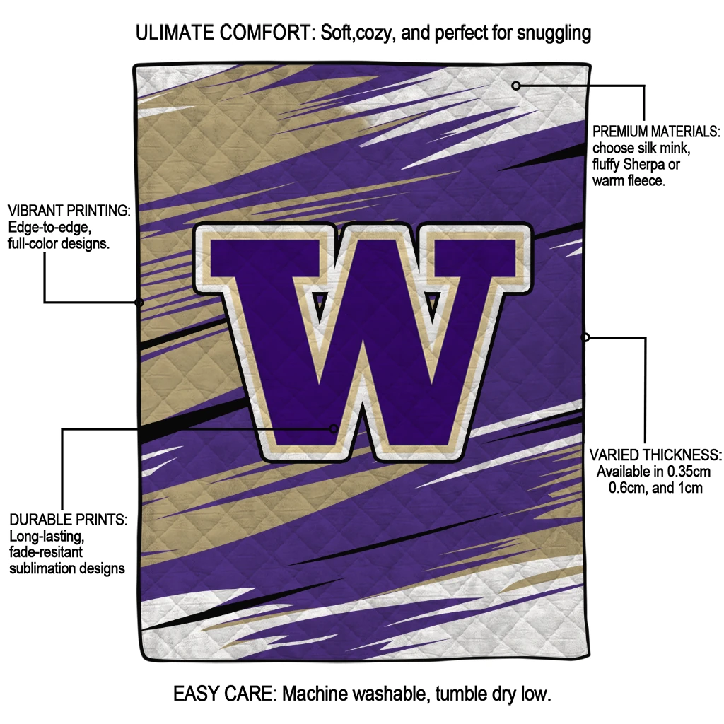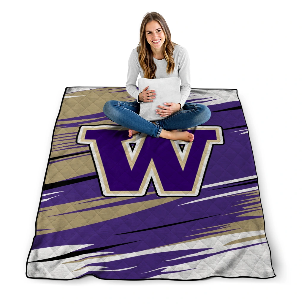 The Washington Huskies Wild Lines Purple White Quilt Blanket is more than a blanket—it’s everyday comfort, thoughtfully made. Crafted from premium quilting fabric with a soft microfiber touch, it offers a smooth hand-feel and lasting coziness. Layered quilting with a cotton-filled core provides adaptable warmth across seasons while maintaining a clean, tailored look on your bed or sofa.