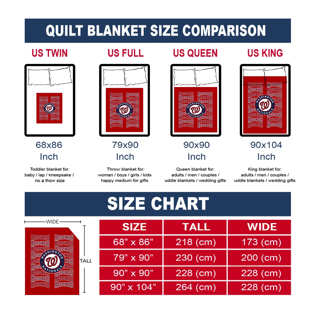 Wrap yourself in warmth and pride with the Washington Nationals Bold Red Quilt Blanket from the Washington Nationals Blankets collection at Yes That Blanket. Made from 100% premium quilting-weight polyester blended with a touch of microfiber, this quilt offers a smooth, soft finish you’ll love. Choose between two quilting styles—Stipple or Diagonal—and enjoy the comfort of a cotton-filled layer inside that adds extra coziness for every season. The border is available in classic black or white, giving your design a clean, timeless edge.