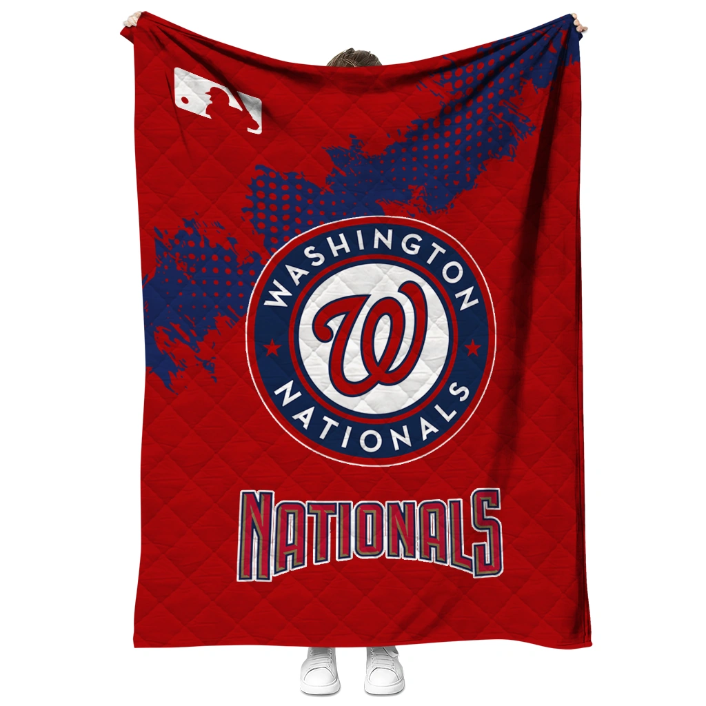 Wrap yourself in warmth and pride with the Washington Nationals League Patch Red Quilt Blanket from the Washington Nationals Blankets collection at Yes That Blanket. Made from 100% premium quilting-weight polyester blended with a touch of microfiber, this quilt offers a smooth, soft finish you’ll love. Choose between two quilting styles—Stipple or Diagonal—and enjoy the comfort of a cotton-filled layer inside that adds extra coziness for every season. The border is available in classic black or white, giving your design a clean, timeless edge.