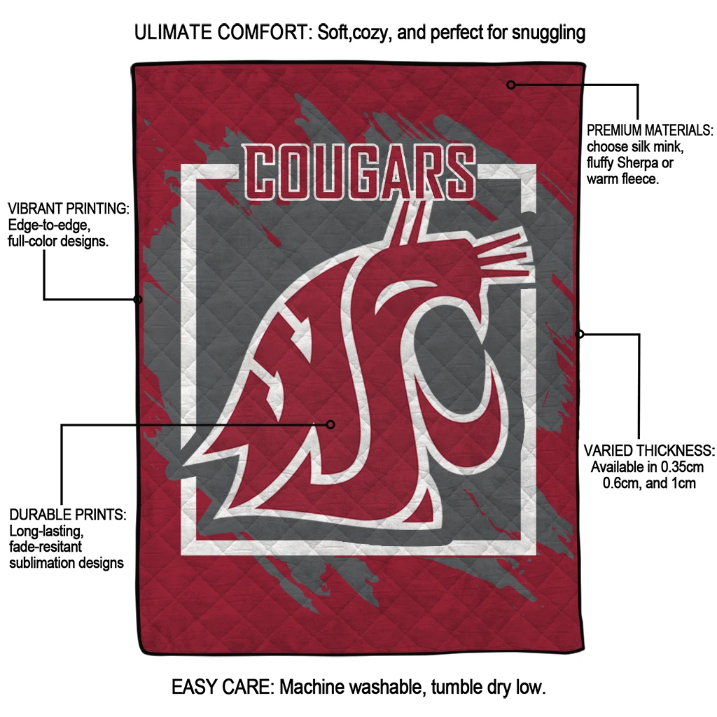 Wrap yourself in warmth and pride with the Washington State Cougars Block Border Crimson Quilt Blanket from the Washington State Cougars Blankets collection at Yes That Blanket. Made from 100% premium quilting-weight polyester blended with a touch of microfiber, this quilt offers a smooth, soft finish you’ll love. Choose between two quilting styles—Stipple or Diagonal—and enjoy the comfort of a cotton-filled layer inside that adds extra coziness for every season. The border is available in classic black or white, giving your design a clean, timeless edge.
