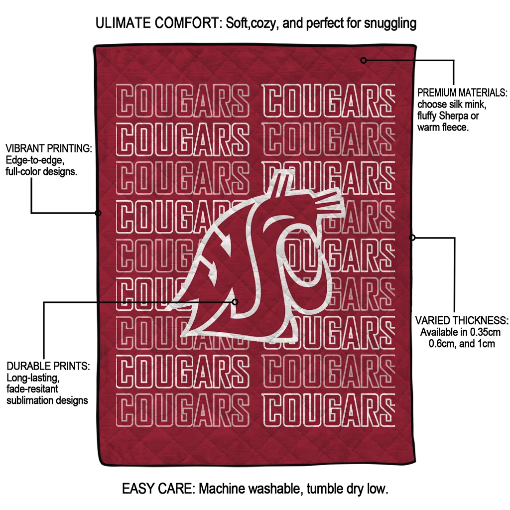The Washington State Cougars Bold Red Crimson Quilt Blanket is more than a blanket—it’s everyday comfort, thoughtfully made. Crafted from premium quilting fabric with a soft microfiber touch, it offers a smooth hand-feel and lasting coziness. Layered quilting with a cotton-filled core provides adaptable warmth across seasons while maintaining a clean, tailored look on your bed or sofa.