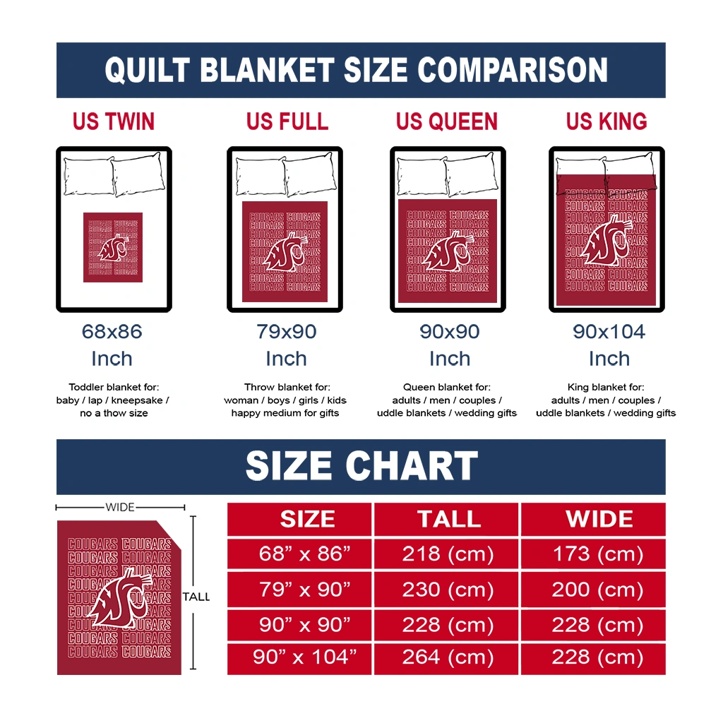 Wrap yourself in warmth and pride with the Washington State Cougars Bold Red Crimson Quilt Blanket from the Washington State Cougars Blankets collection at Yes That Blanket. Made from 100% premium quilting-weight polyester blended with a touch of microfiber, this quilt offers a smooth, soft finish you’ll love. Choose between two quilting styles—Stipple or Diagonal—and enjoy the comfort of a cotton-filled layer inside that adds extra coziness for every season. The border is available in classic black or white, giving your design a clean, timeless edge.