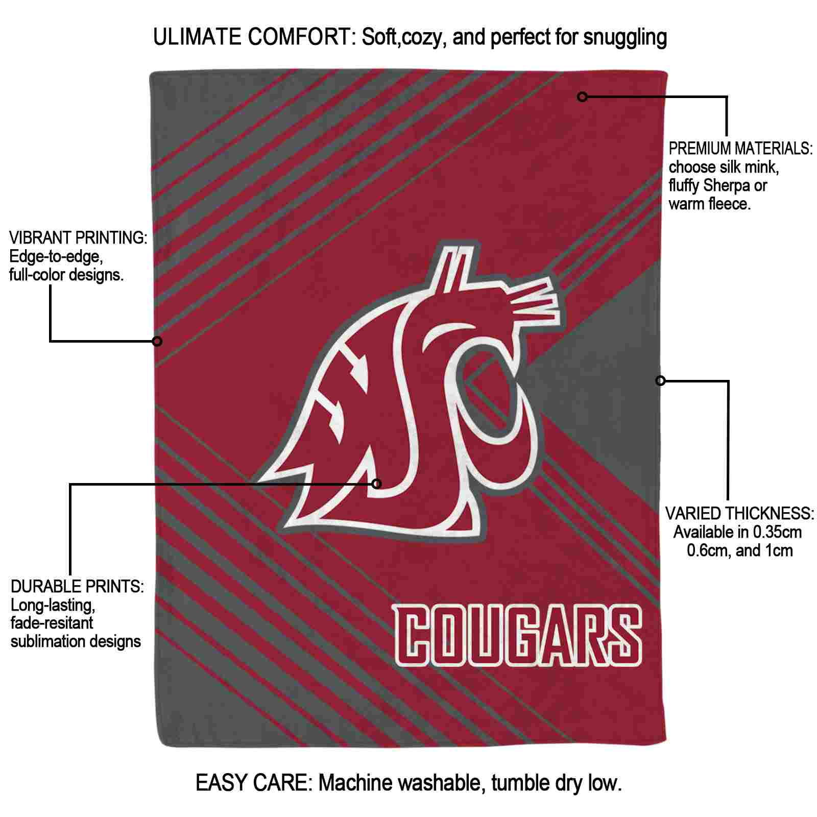 Without a doubt, the Washington State Cougars Diagonal Stripes Crimson Blanket from Washington State Cougars Blankets collection is offering true fans a chance to showcase passion in a cool way. Personalize it with your favorite team’s logo or a meaningful name to make it uniquely yours. Isn’t that great? The full-color print ensures vibrant, edge-to-edge designs, bringing your sports enthusiasm to life!