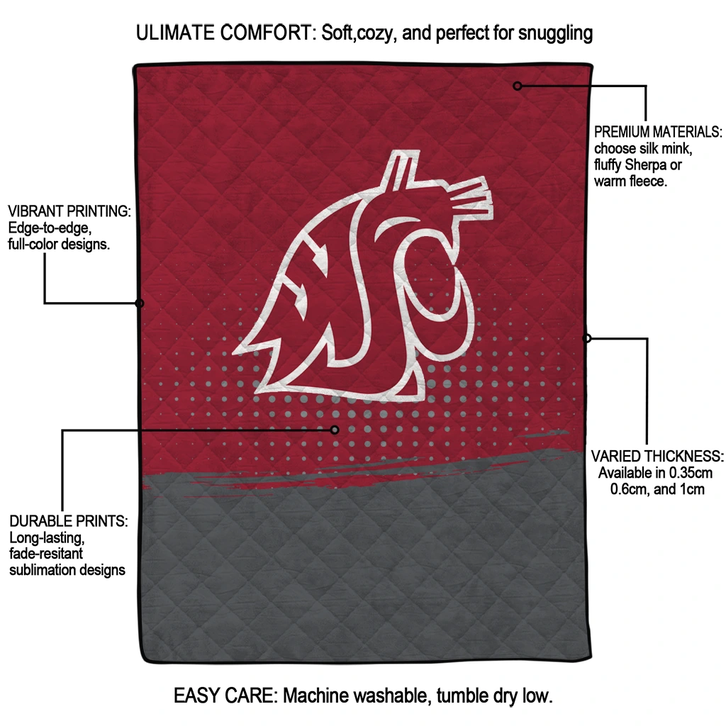 Wrap yourself in warmth and pride with the Washington State Cougars Dot Illusion Crimson Quilt Blanket from the Washington State Cougars Blankets collection at Yes That Blanket. Made from 100% premium quilting-weight polyester blended with a touch of microfiber, this quilt offers a smooth, soft finish you’ll love. Choose between two quilting styles—Stipple or Diagonal—and enjoy the comfort of a cotton-filled layer inside that adds extra coziness for every season. The border is available in classic black or white, giving your design a clean, timeless edge.