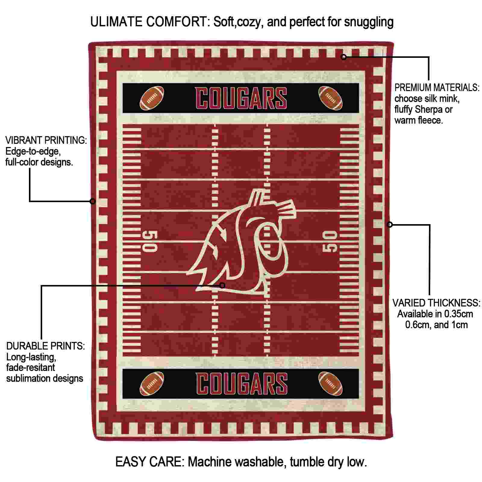 Without a doubt, the Washington State Cougars Football Field Crimson Blanket from Washington State Cougars Blankets collection is offering true fans a chance to showcase passion in a cool way. Personalize it with your favorite team's logo or a meaningful name to make it uniquely yours. Isn't that great? The full-color print ensures vibrant, edge-to-edge designs, bringing your sports enthusiasm to life!