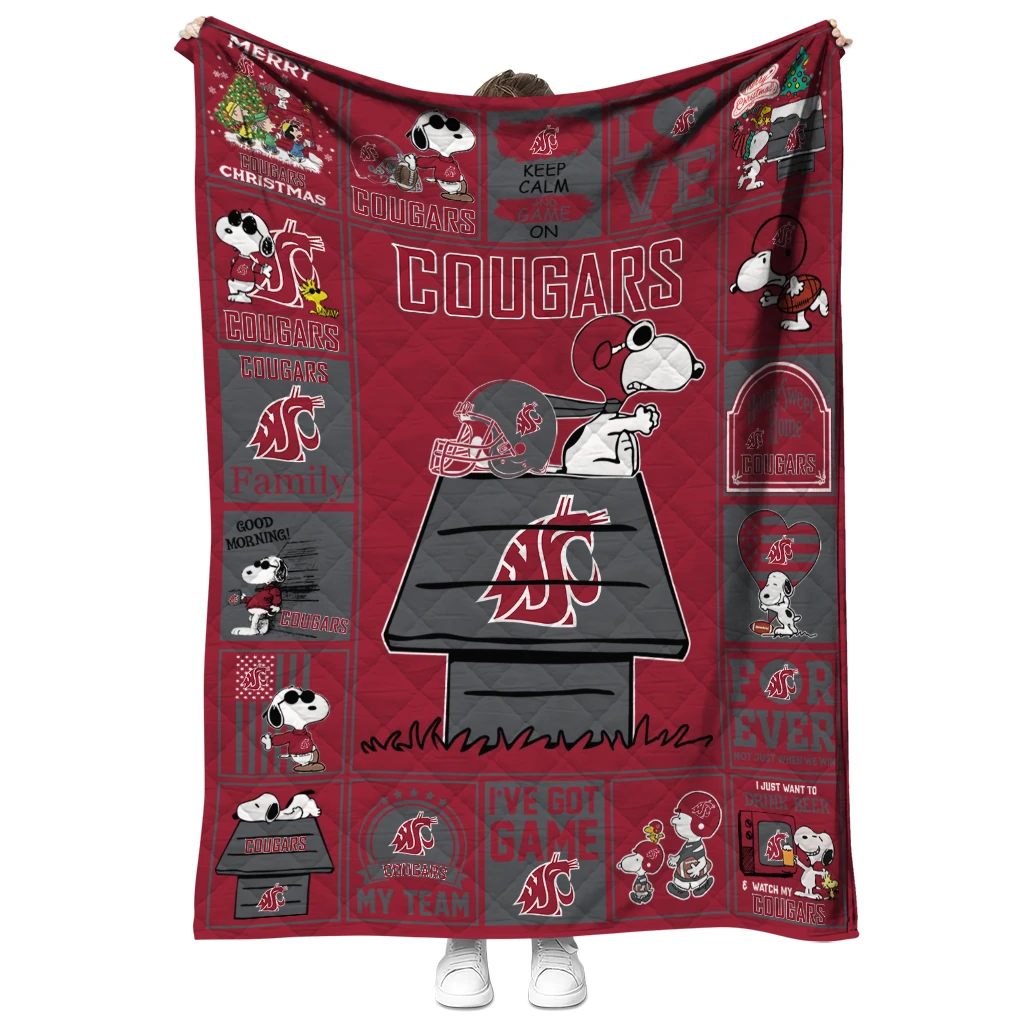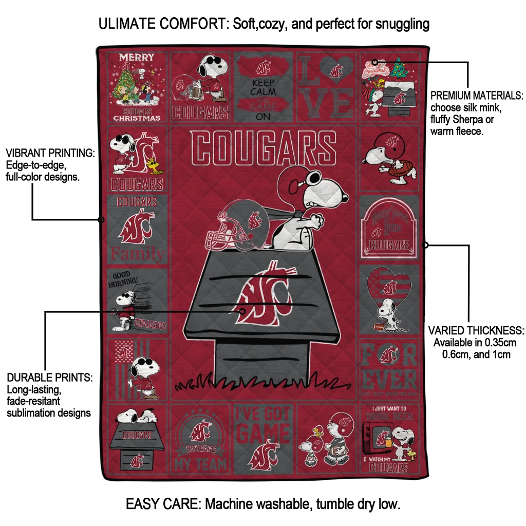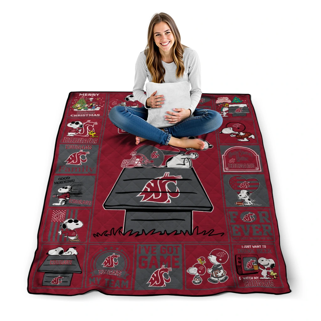 Wrap yourself in warmth and pride with the Washington State Cougars Snoopy Love Crimson Quilt Blanket from the Washington State Cougars Blankets collection at Yes That Blanket. Made from 100% premium quilting-weight polyester blended with a touch of microfiber, this quilt offers a smooth, soft finish you’ll love. Choose between two quilting styles—Stipple or Diagonal—and enjoy the comfort of a cotton-filled layer inside that adds extra coziness for every season. The border is available in classic black or white, giving your design a clean, timeless edge.