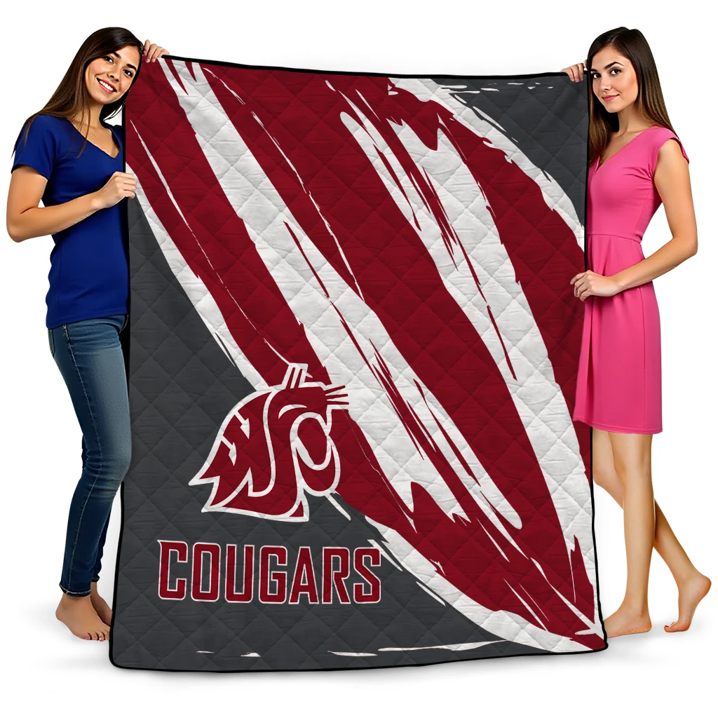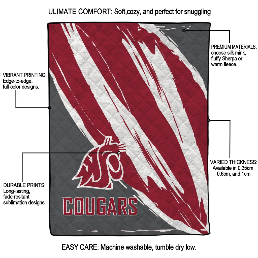 Wrap yourself in warmth and pride with the Washington State Cougars Stroke Art Crimson White Quilt Blanket from the Washington State Cougars Blankets collection at Yes That Blanket. Made from 100% premium quilting-weight polyester blended with a touch of microfiber, this quilt offers a smooth, soft finish you’ll love. Choose between two quilting styles—Stipple or Diagonal—and enjoy the comfort of a cotton-filled layer inside that adds extra coziness for every season. The border is available in classic black or white, giving your design a clean, timeless edge.