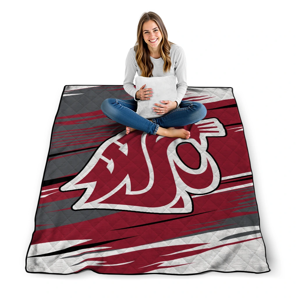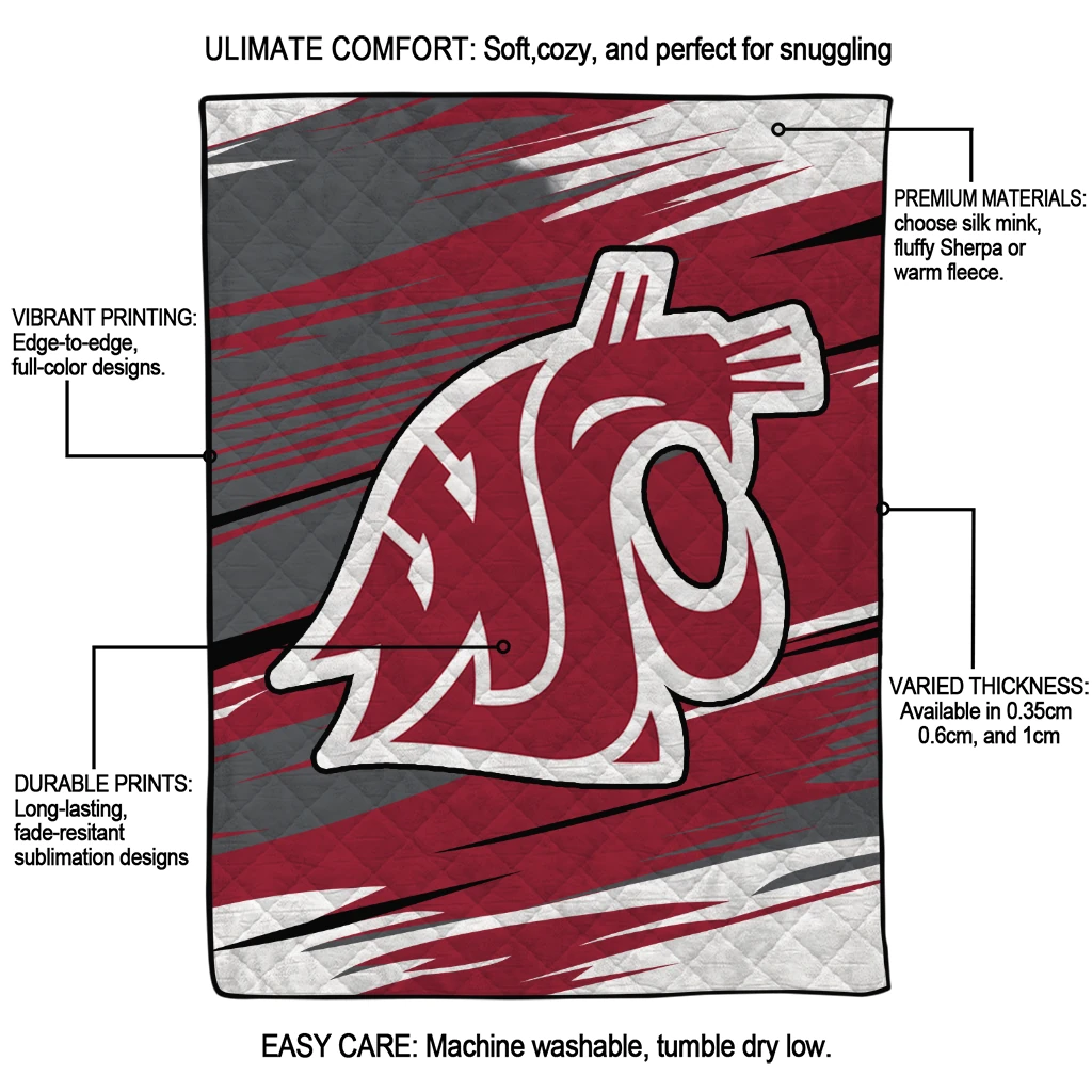 Washington State Cougars Wild Lines Crimson White Quilt Blanket
