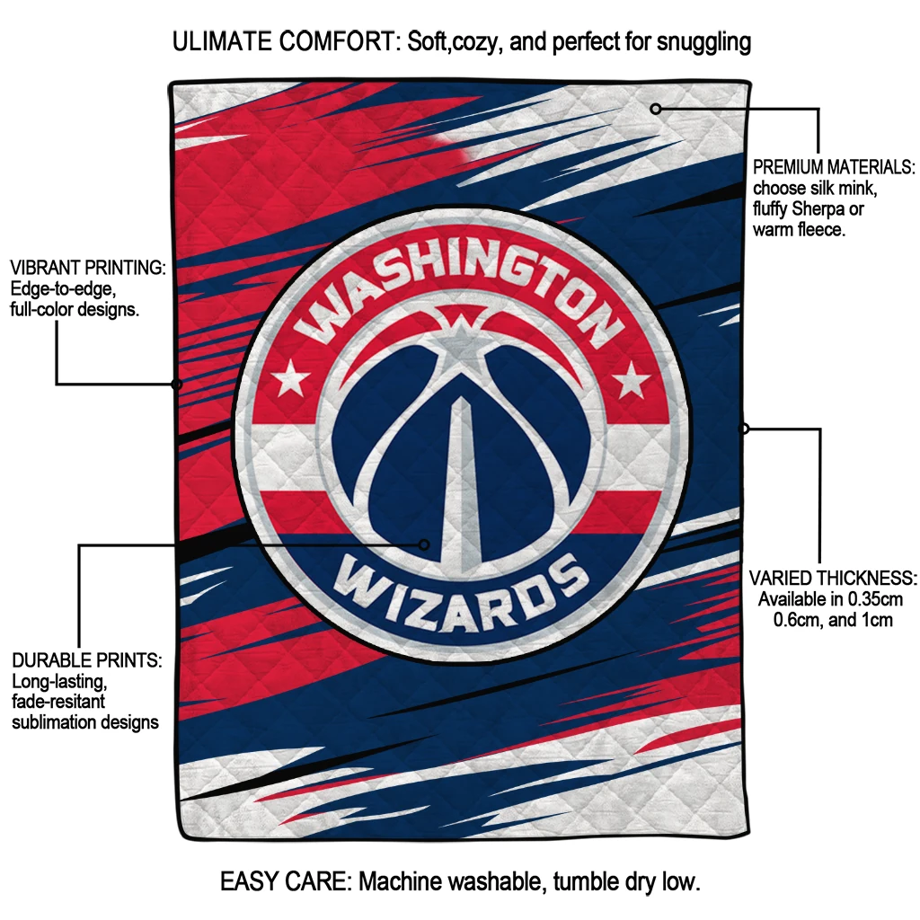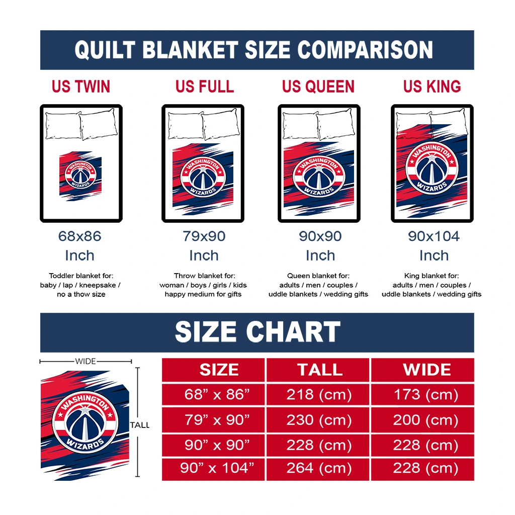The Washington Wizards Wild Lines Blue White Quilt Blanket is more than a blanket—it’s everyday comfort, thoughtfully made. Crafted from premium quilting fabric with a soft microfiber touch, it offers a smooth hand-feel and lasting coziness. Layered quilting with a cotton-filled core provides adaptable warmth across seasons while maintaining a clean, tailored look on your bed or sofa.