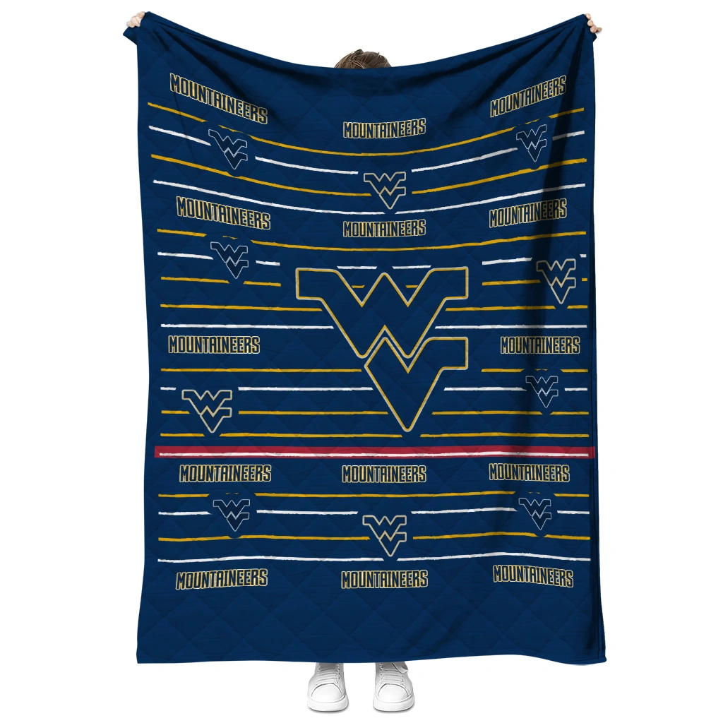 West Virginia Mountaineers Handdrawn Stripes Blue Quilt Blanket
