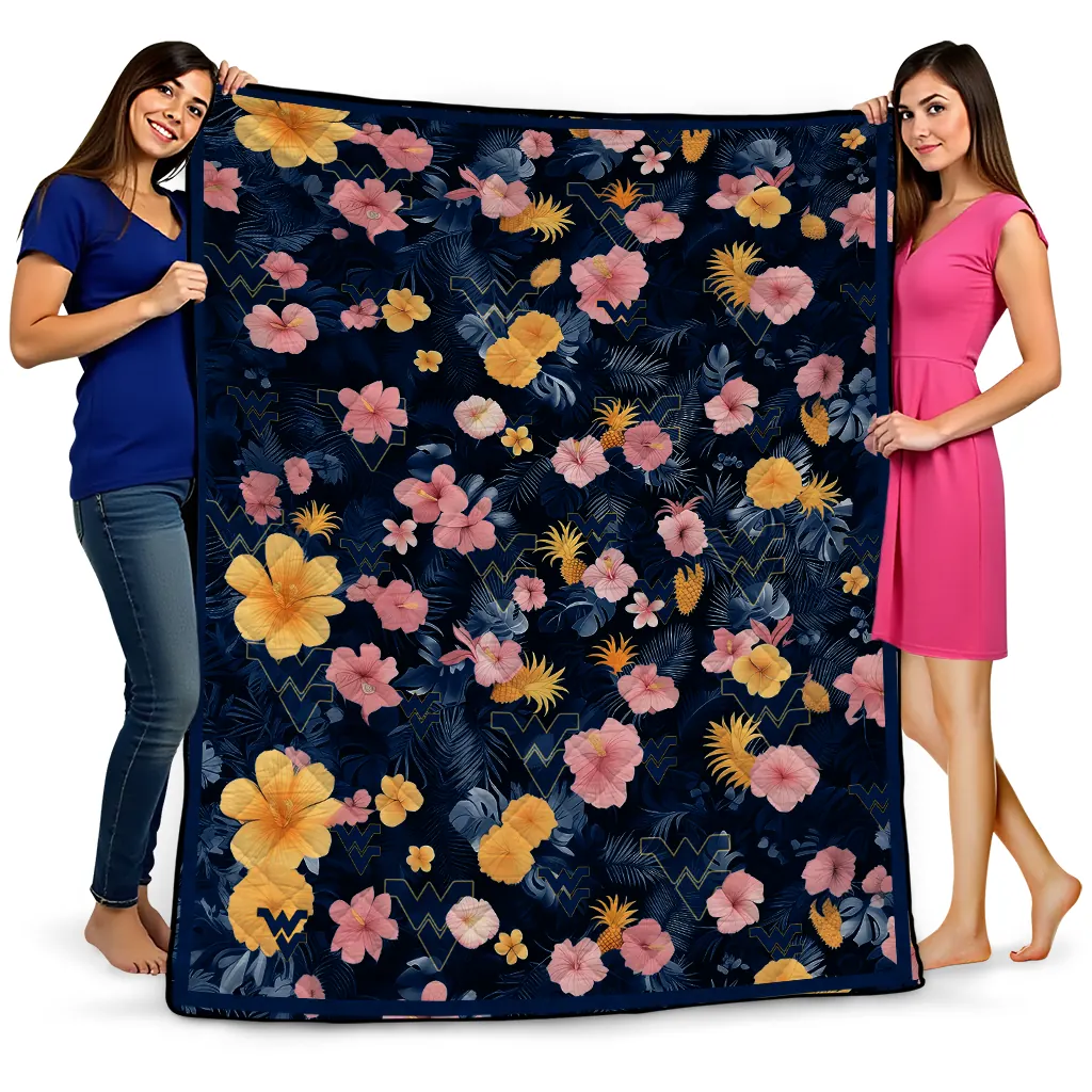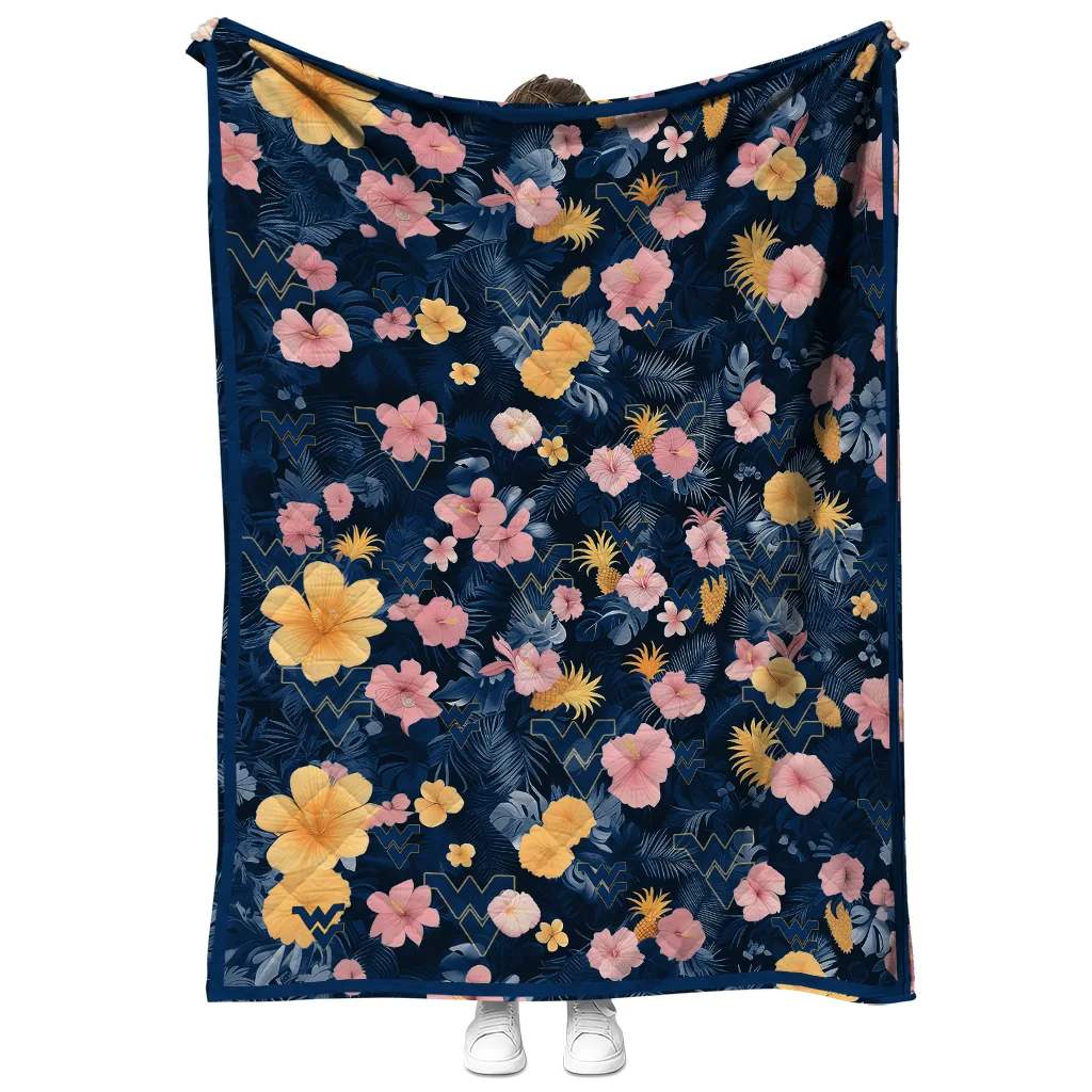 Wrap yourself in warmth and pride with the West Virginia Mountaineers Hibiscus Foliage Blue Quilt Blanket from the West Virginia Mountaineers Blankets collection at Yes That Blanket. Made from 100% premium quilting-weight polyester blended with a touch of microfiber, this quilt offers a smooth, soft finish you’ll love. Choose between two quilting styles—Stipple or Diagonal—and enjoy the comfort of a cotton-filled layer inside that adds extra coziness for every season. The border is available in classic black or white, giving your design a clean, timeless edge.