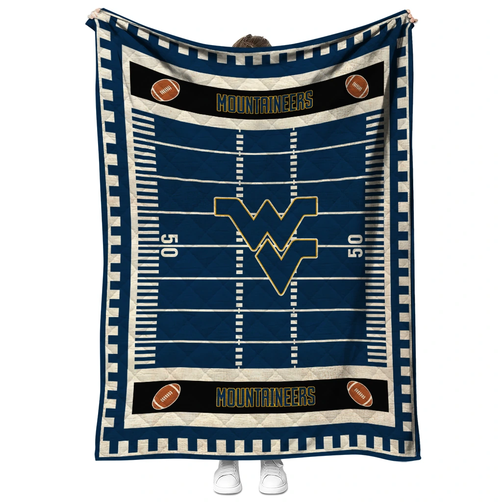Wrap yourself in warmth and pride with the West Virginia Mountaineers Mickey Player Blue Quilt Blanket from the West Virginia Mountaineers Blankets collection at Yes That Blanket. Made from 100% premium quilting-weight polyester blended with a touch of microfiber, this quilt offers a smooth, soft finish you’ll love. Choose between two quilting styles—Stipple or Diagonal—and enjoy the comfort of a cotton-filled layer inside that adds extra coziness for every season. The border is available in classic black or white, giving your design a clean, timeless edge.