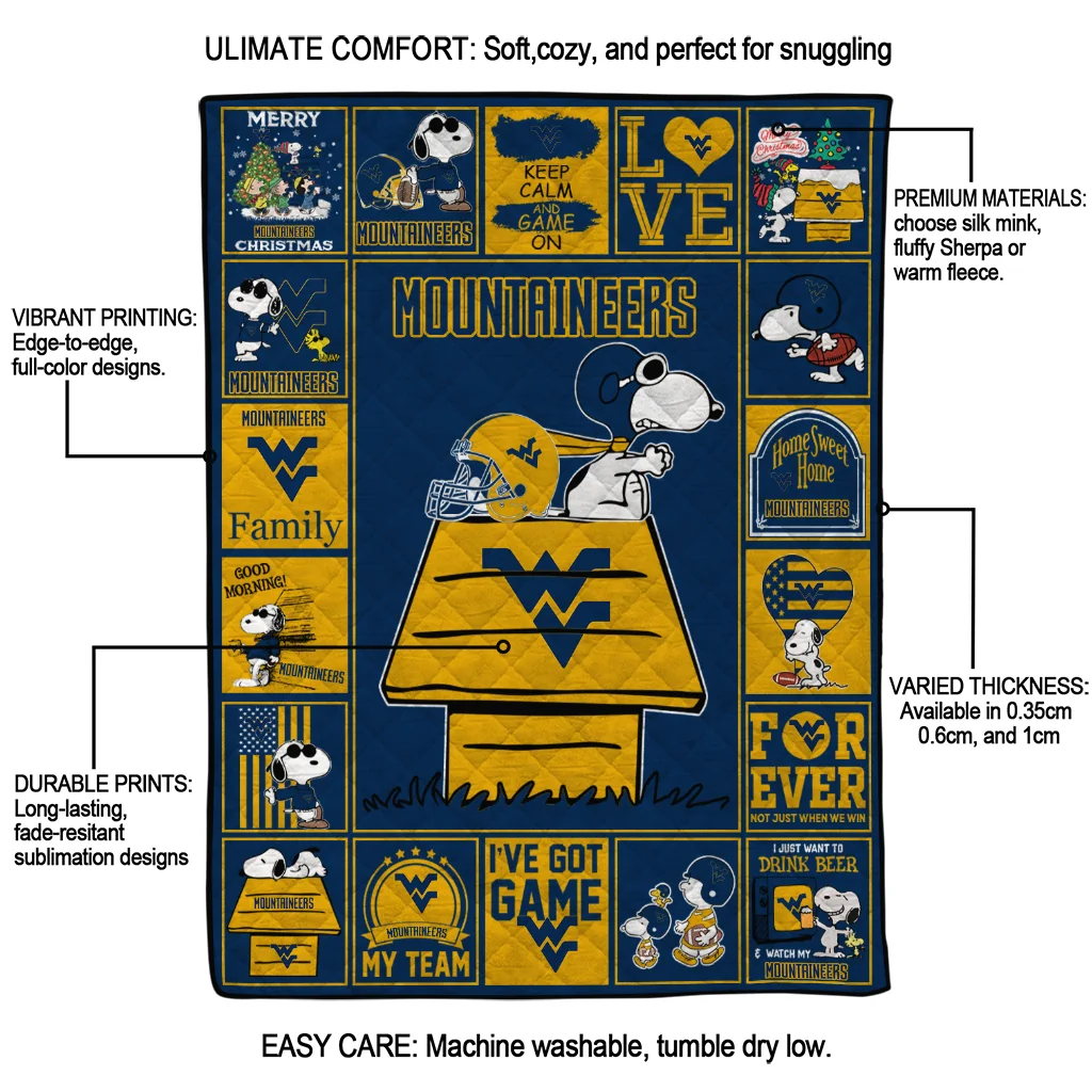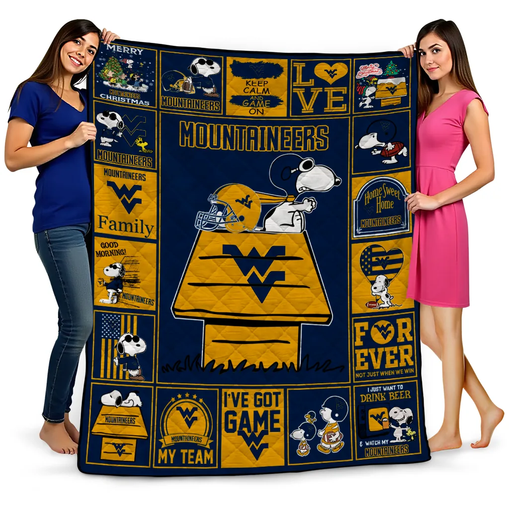 West Virginia Mountaineers Snoopy Love Blue Quilt Blanket