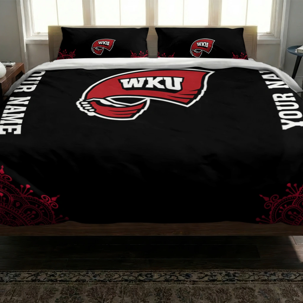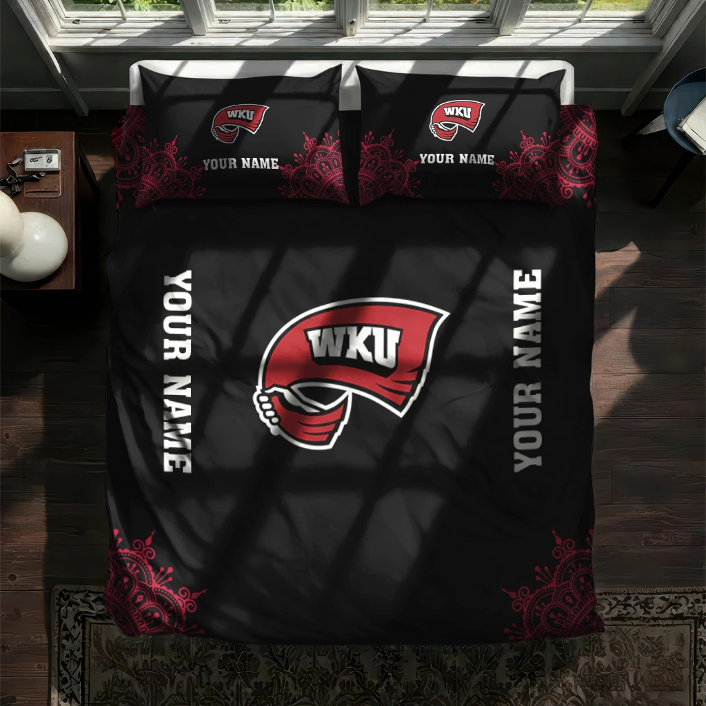 Western Kentucky Hilltoppers Bedding Set – Custom Mandala Lacework Black Red