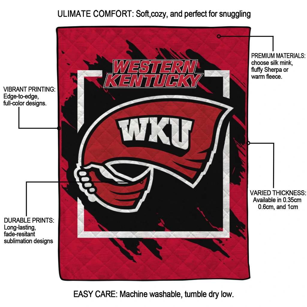 Western Kentucky Hilltoppers Block Border Red Quilt Blanket