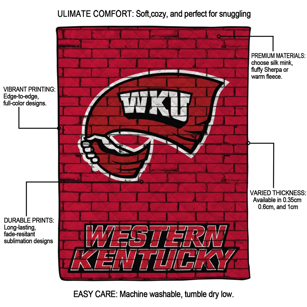 Western Kentucky Hilltoppers Brick Grid Red Quilt Blanket